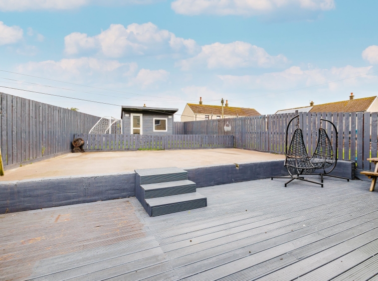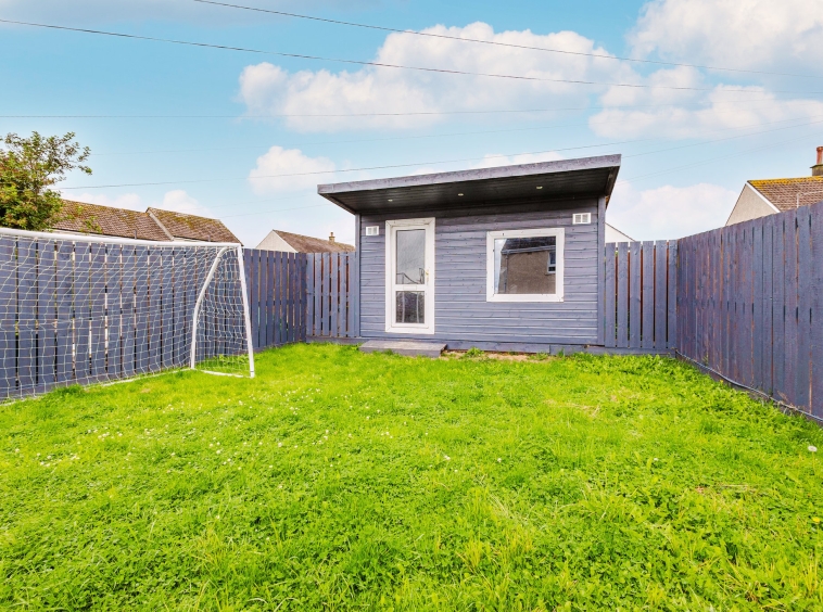 Positioned on a generous plot, this family villa boasts private low maintenance garden grounds to the front and rear. The front gardens are laid to chips with a driveway to the side providing plentiful off street parking. The rear gardens are landscaped comprising of a decked patio, raised concrete patio area and lawn, with a timber garden room. The rear gardens are enclosed allowing for a safe and peaceful outdoor family space.