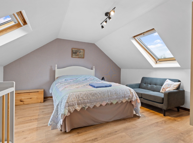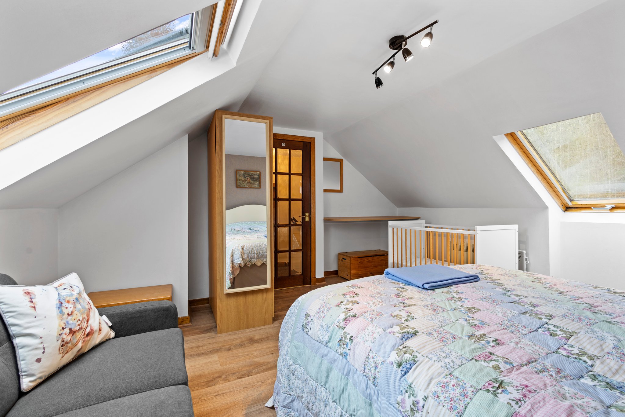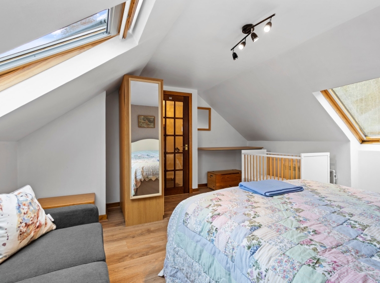 4.42m x 4.74m (14′ 6″ x 15′ 7″) The master bedroom is a generous double boasting neutral decor, modern laminate flooring and a double glazed velux window to the front and rear.