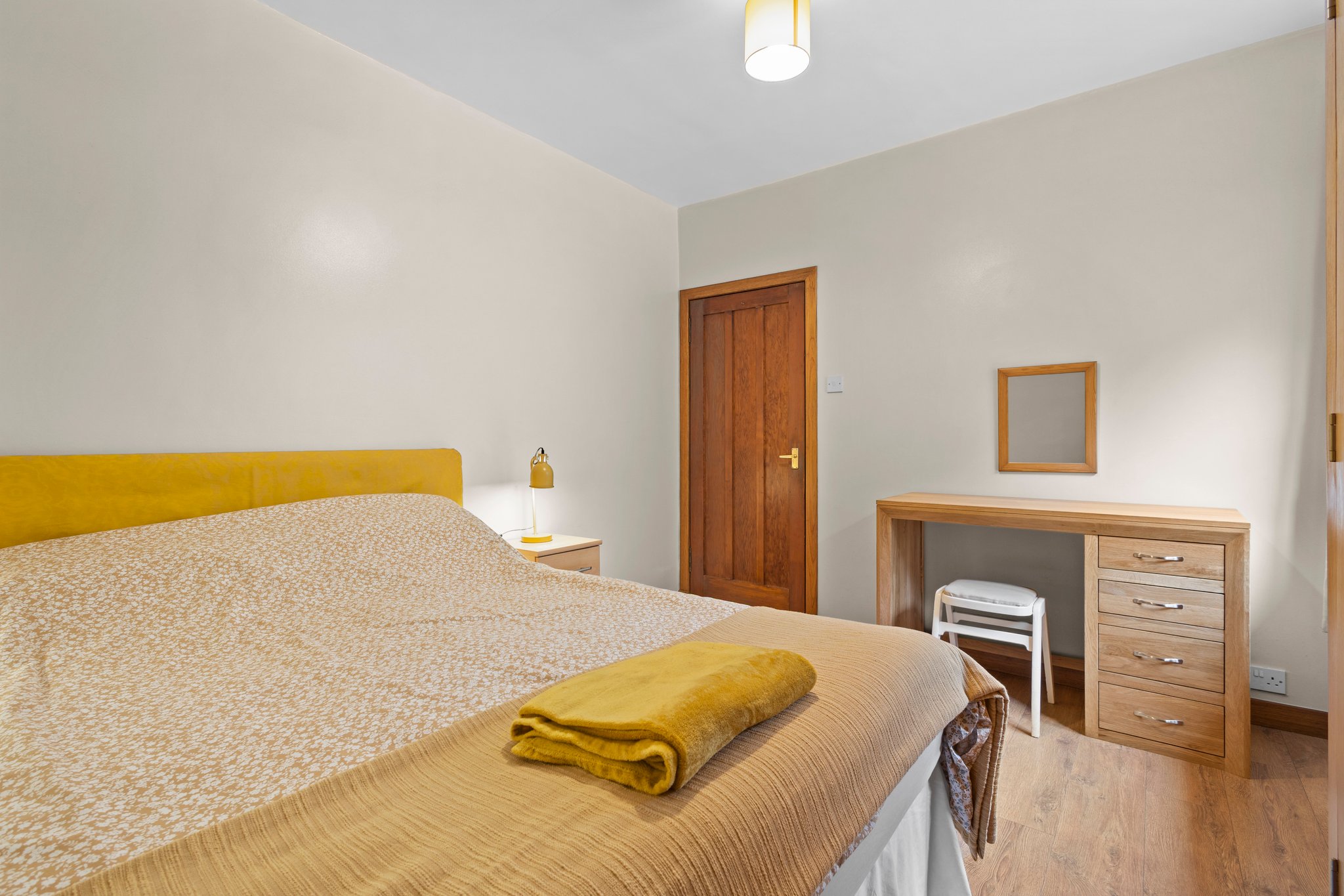 3.09m x 3.69m (10′ 2″ x 12′ 1″) Bedroom three is a good sized apartment located on the lower level that could be flexible utilised as an additional family room or home office, offering neutral decor, laminate flooring and a double glazed window to the rear.