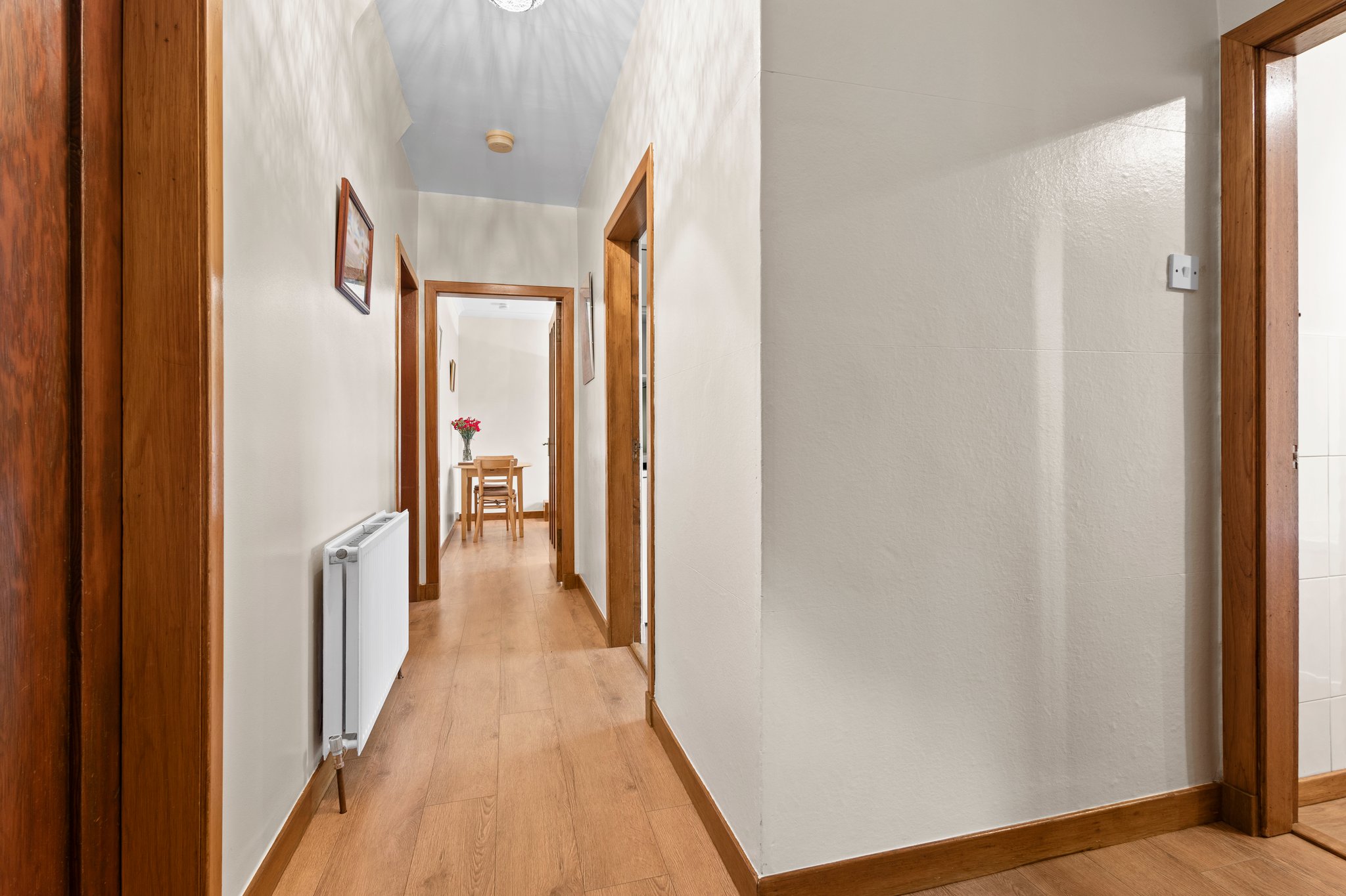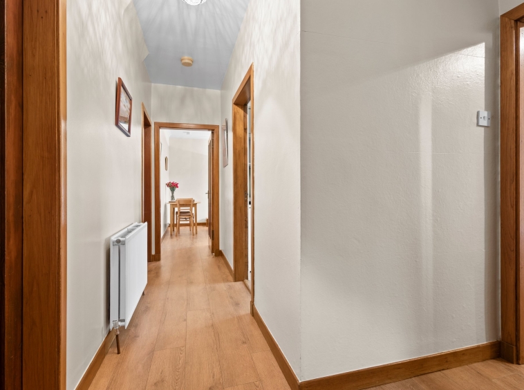 2.45m x 4.68m (8′ 0″ x 15′ 4″) Access is given to a welcoming entrance hallway offering neutral decor, practical storage cupboard and laminate flooring. The hallway gives access to the lounge, kitchen, bedroom two and three, bathroom and a carpeted staircase leads to the upper level.