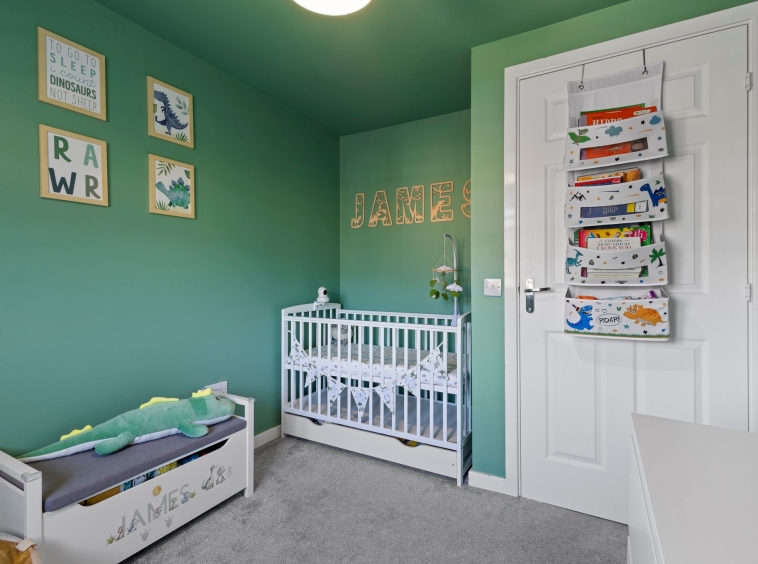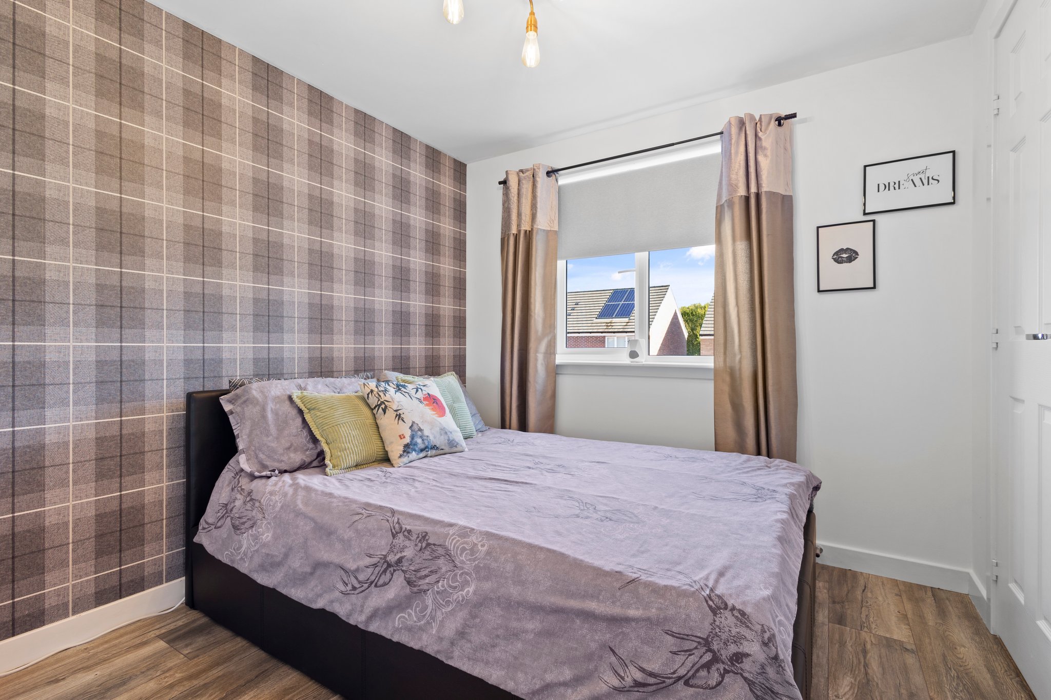 2.58m x 3.11m (8′ 6″ x 10′ 2″) Spacious rear facing bedroom with modern decor, fitted carpet and a double glazed window.