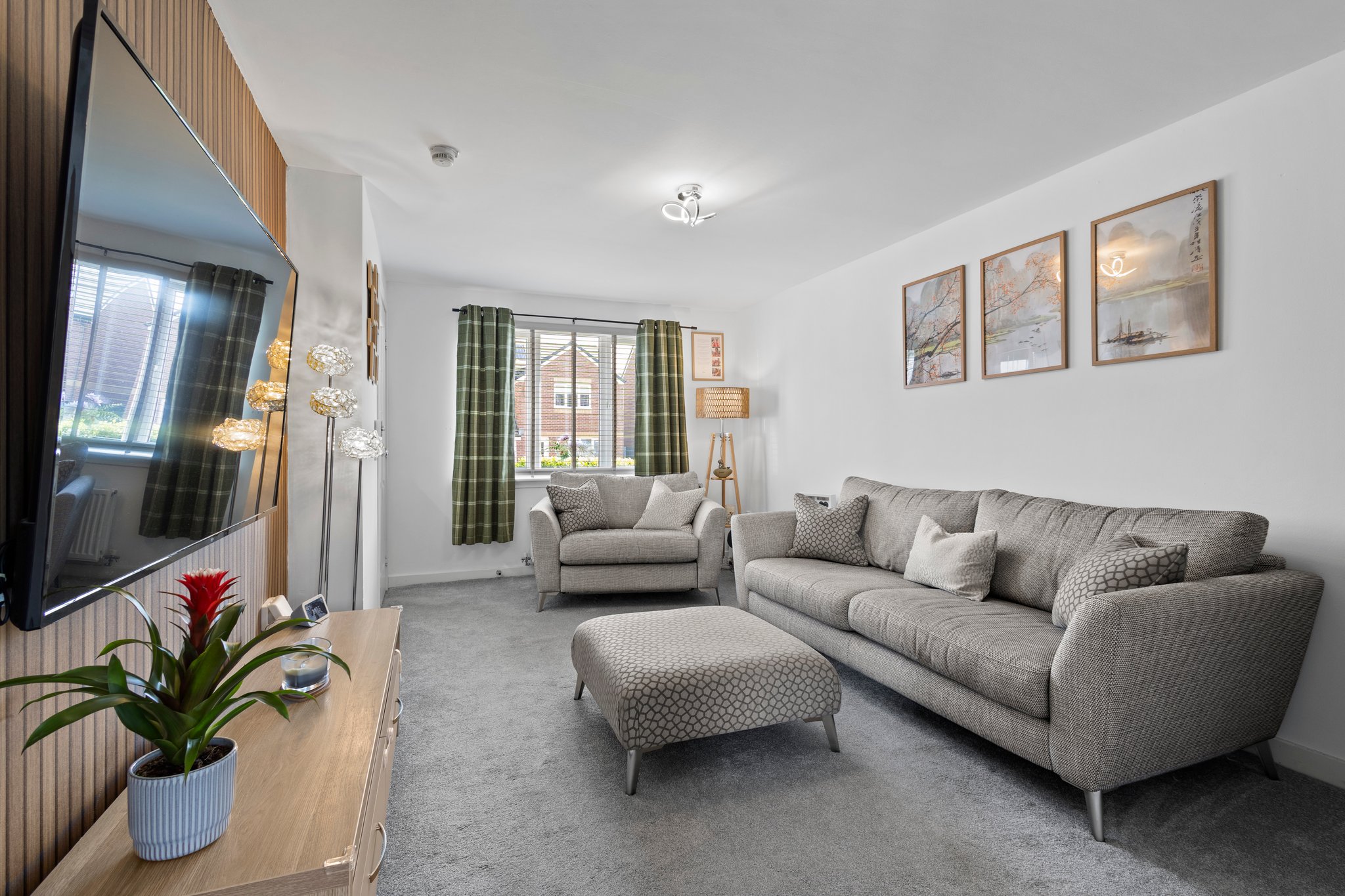 Boasting a spacious plot providing landscaped front and rear gardens, the front garden offers a well manicured lawn and a chipped driveway allowing for ample off street parking and leading to the garage. The rear garden is complete with a large spacious area laid to astro turf, modern paved pathway and an elevated decked patio perfect for al fresco dining and entertaining.
