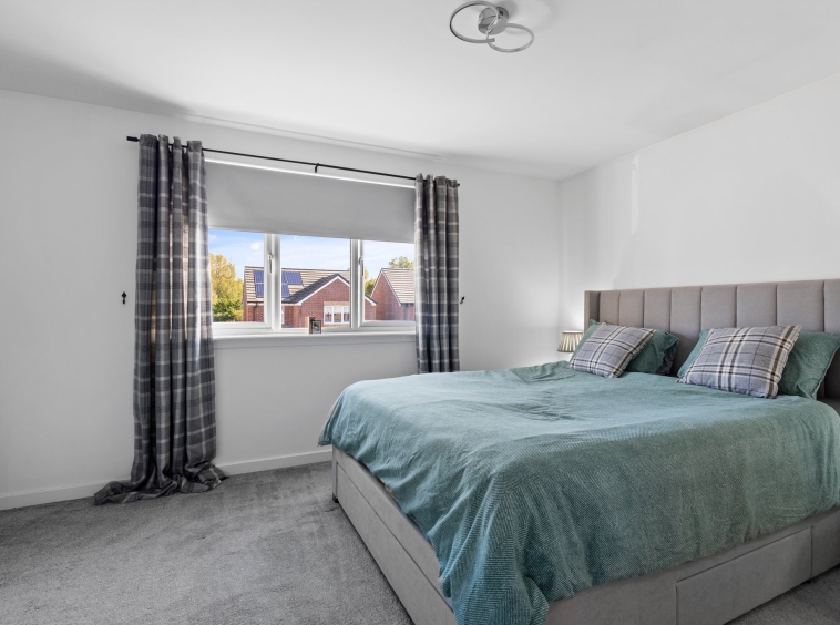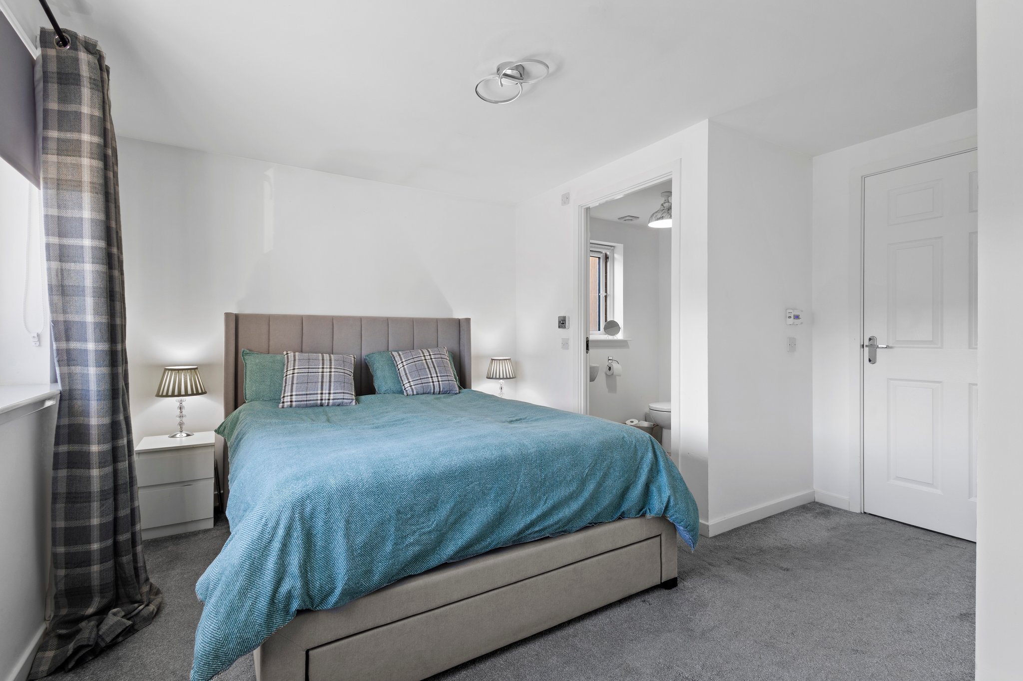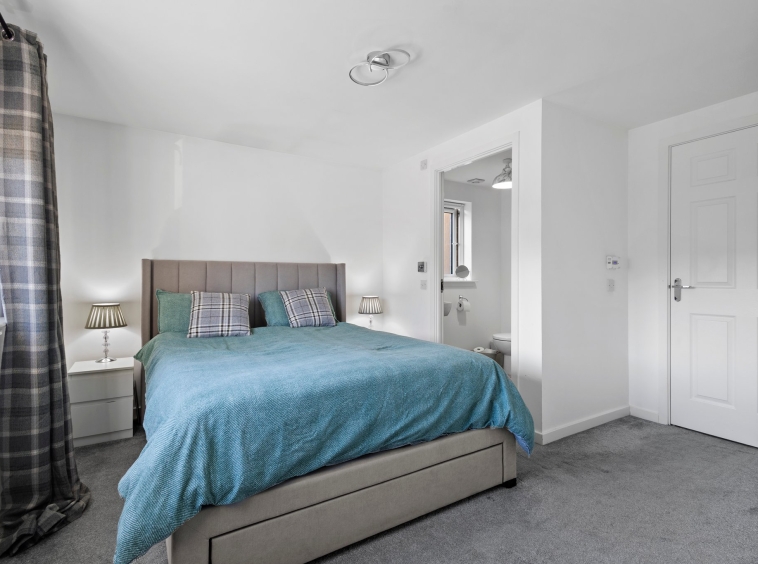 4.30m x 3.95m (14′ 1″ x 13′ 0″) The master bedroom is an impressive double offering modern decor, plentiful space for free standing furniture, fitted carpet, double glazed window to the front and access to en-suite facilities.