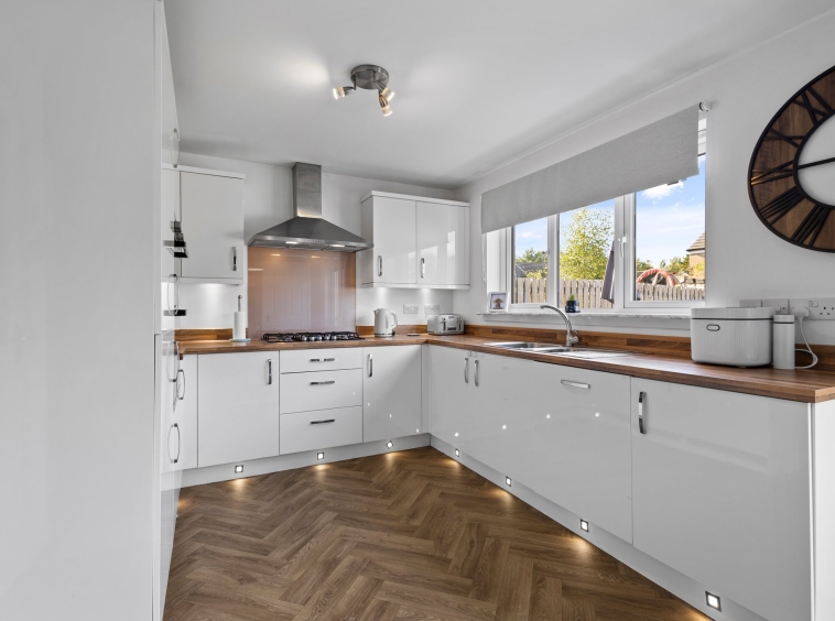 Located within an exclusive modern development in the ever popular coastal town of Irvine, this outstanding four bedroom detached villa offers the perfect blend of style, space, and practicality for family living. Arranged over two levels and built by the reputable Persimmon homes, the property features a generous floor plan presented in true walk-in condition, with contemporary décor and high quality finishes throughout.
