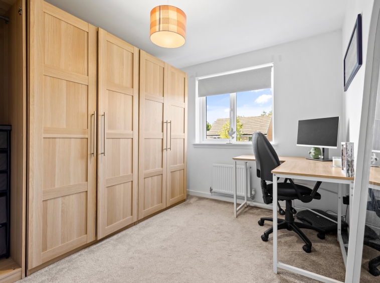 2.45m x 3.46m (8′ 0″ x 11′ 4″) Bedroom three is a spacious apartment that could be flexibly utilised as a home office complete with modern decor, fitted carpet and a double glazed window to the rear.