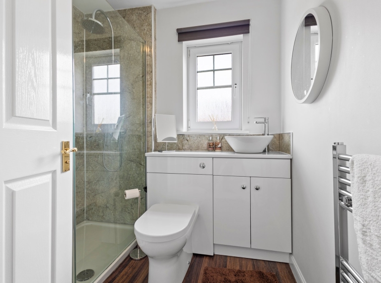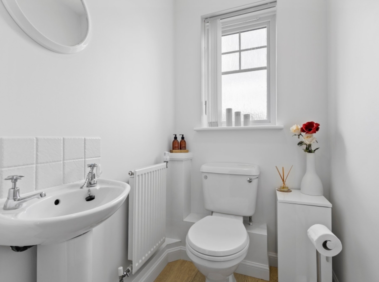 1.14m x 1.42m (3′ 9″ x 4′ 8″) Practical wc located on the lower level comprising of a wash hand basin, wc, neutral decor, laminate flooring and a double glazed window to the front.