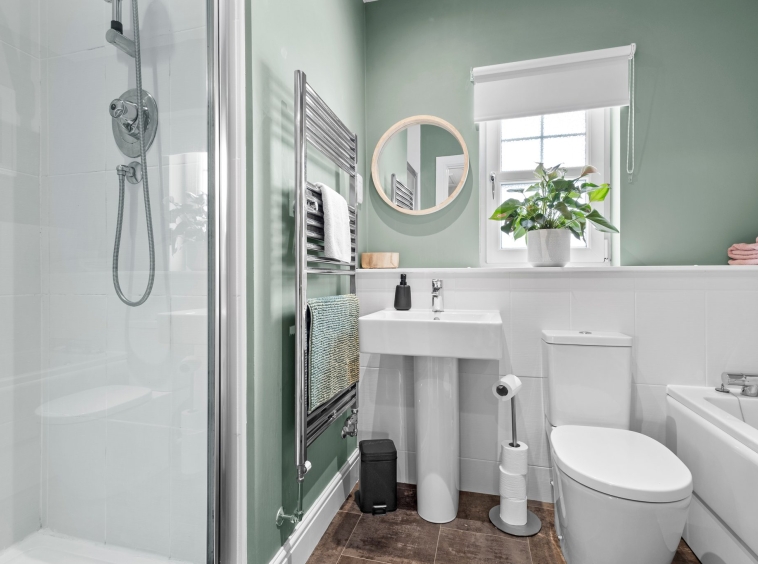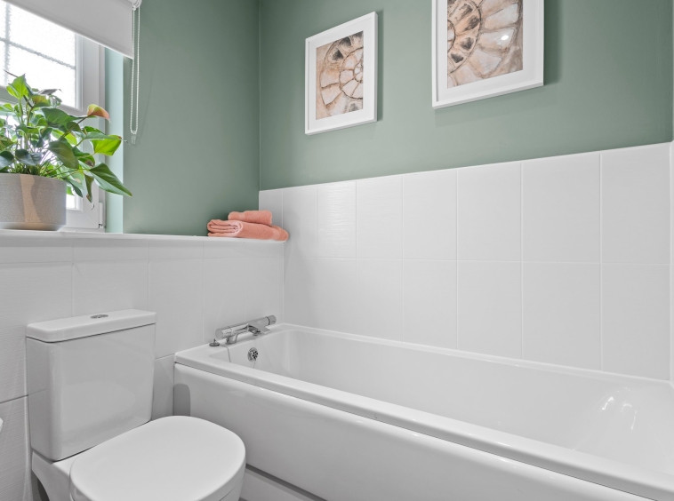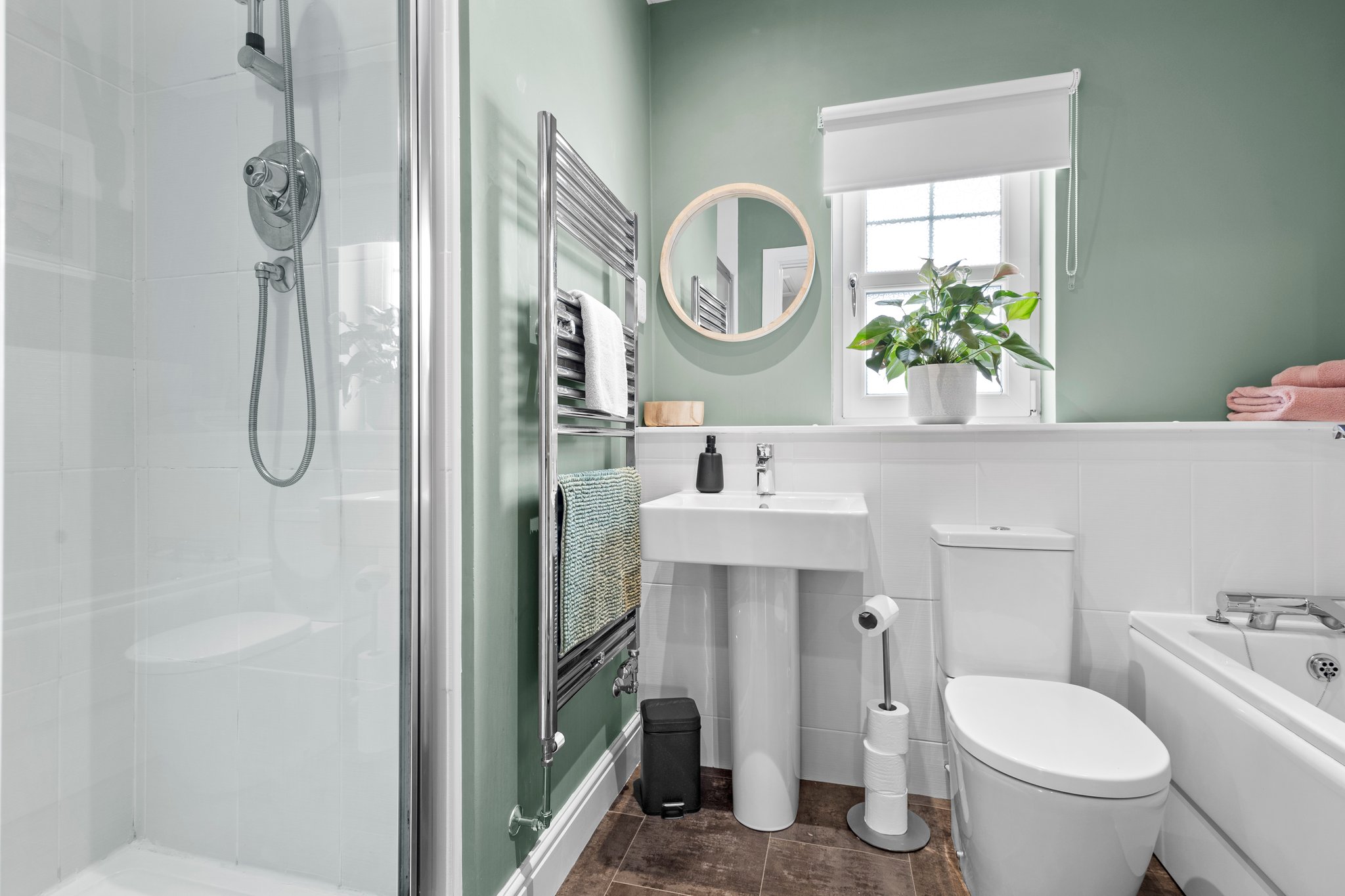 2.86m x 1.83m (9′ 5″ x 6′ 0″) Completing the accommodation is the family bathroom comprising of a wash hand basin, wc, bath, shower cubicle with mains shower, modern decor with stylish half height tiling, heated towel rail, ceiling spotlights, vinyl flooring and a double glazed window to the rear.