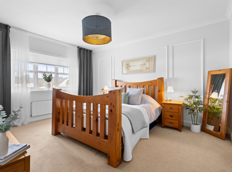 3.39m x 4.40m (11′ 1″ x 14′ 5″) An impressive double boasting stylish contemporary decor, triple fitted wardrobes offering ample storage, ceiling coving, fitted carpet, a double glazed window to the front and access to en-suit facilities.