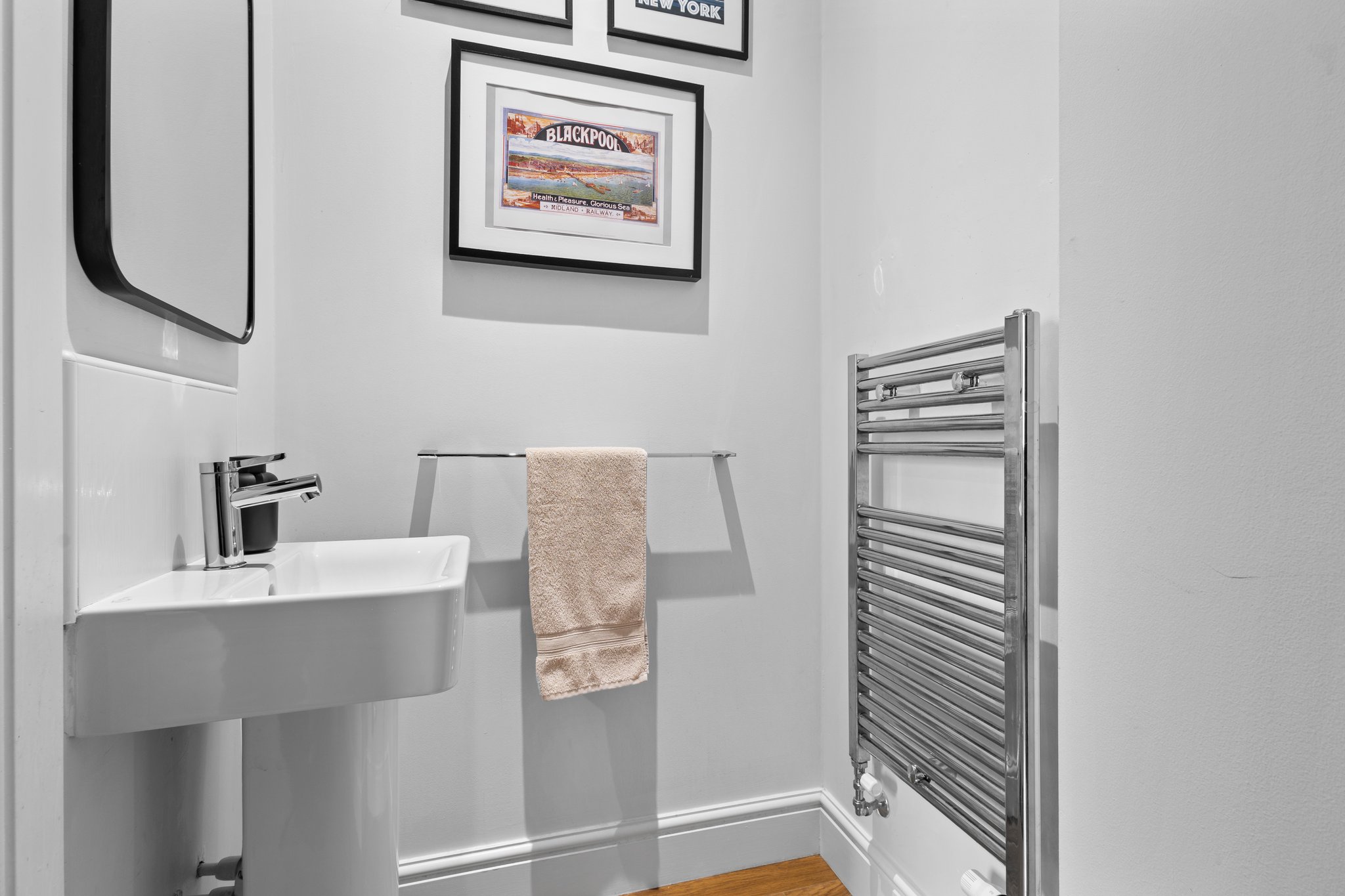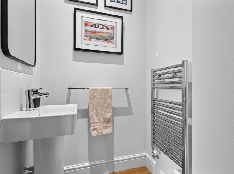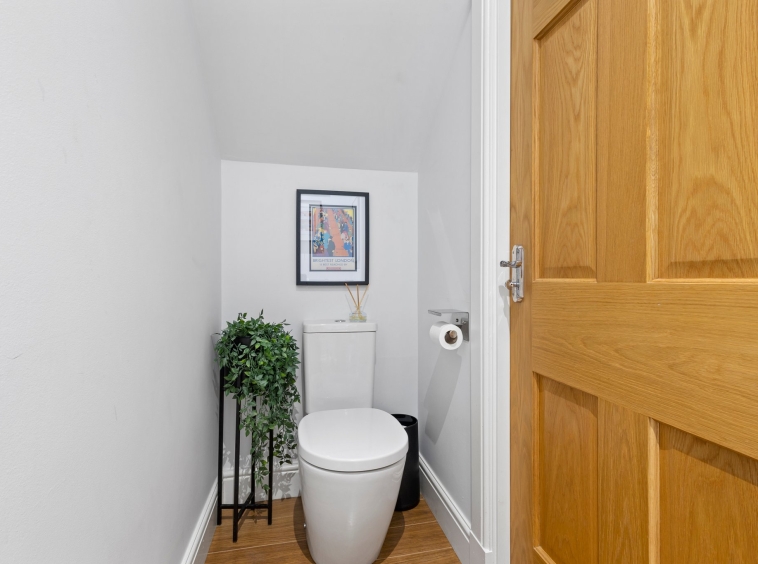 1.08m x 2.37m (3′ 7″ x 7′ 9″) Conveniently located on the lower level, the practical wc comprises of a wash hand basin, wc, modern decor and laminate flooring.