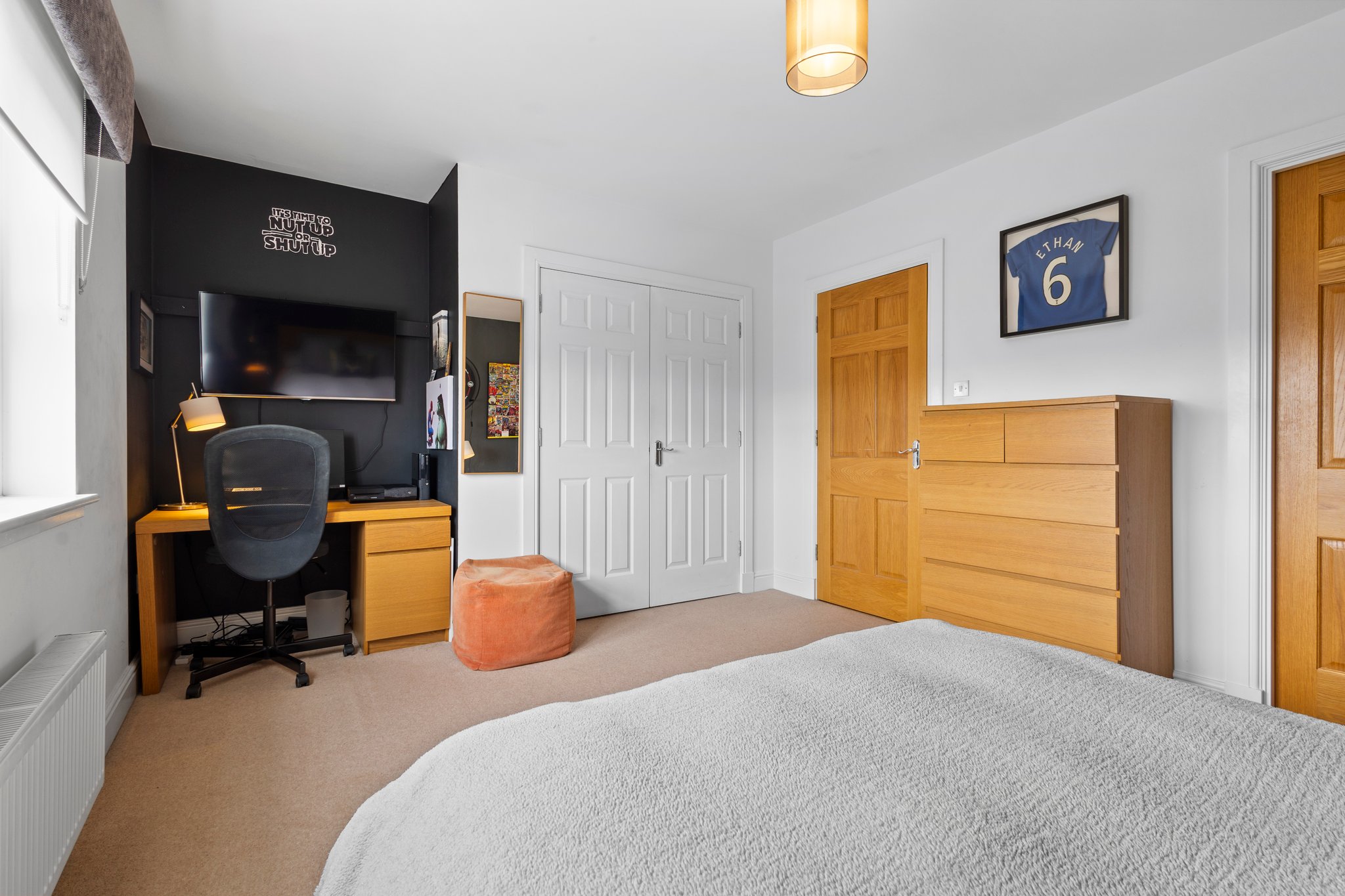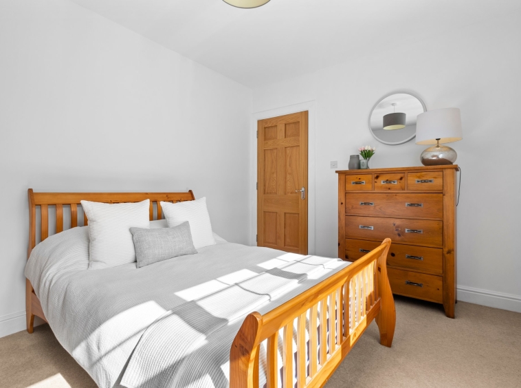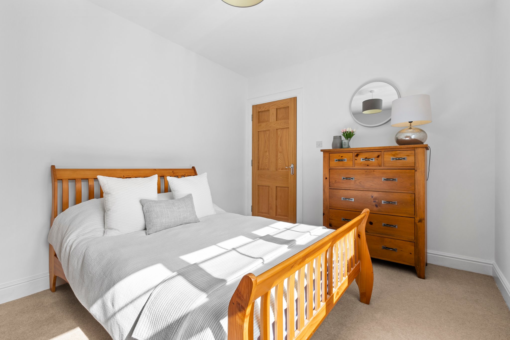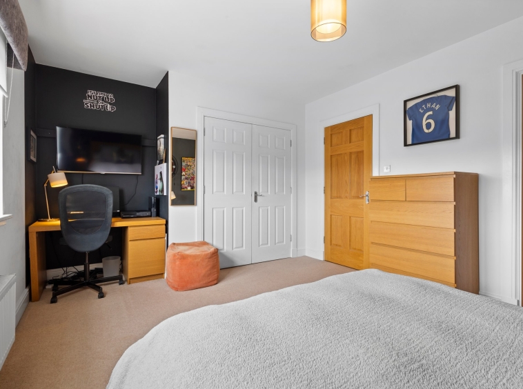 3.93m x 2.86m (12′ 11″ x 9′ 5″) Bedroom three is a good sized double with modern decor, storage cupboard, fitted carpet and a double glazed window to the rear.