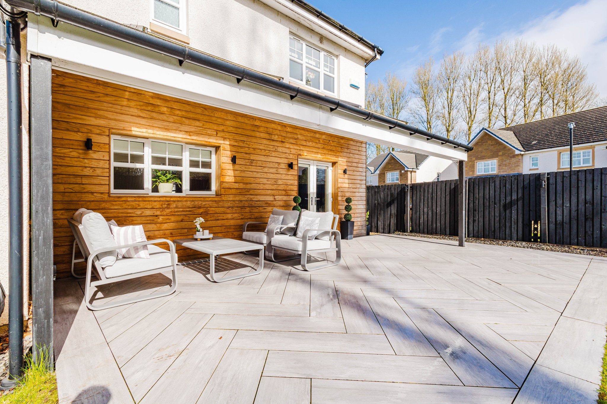 Occupying a generous plot, this property boasts beautifully landscaped gardens to both the front and rear. The front garden features a neatly maintained lawn alongside a mono-block driveway, providing ample off street parking. To the rear, the fully enclosed garden offers a spacious lawn framed by traditional timber sleepers and decorative stone chippings. A superb covered patio area completes the space, creating the perfect setting for relaxing or entertaining outdoors.