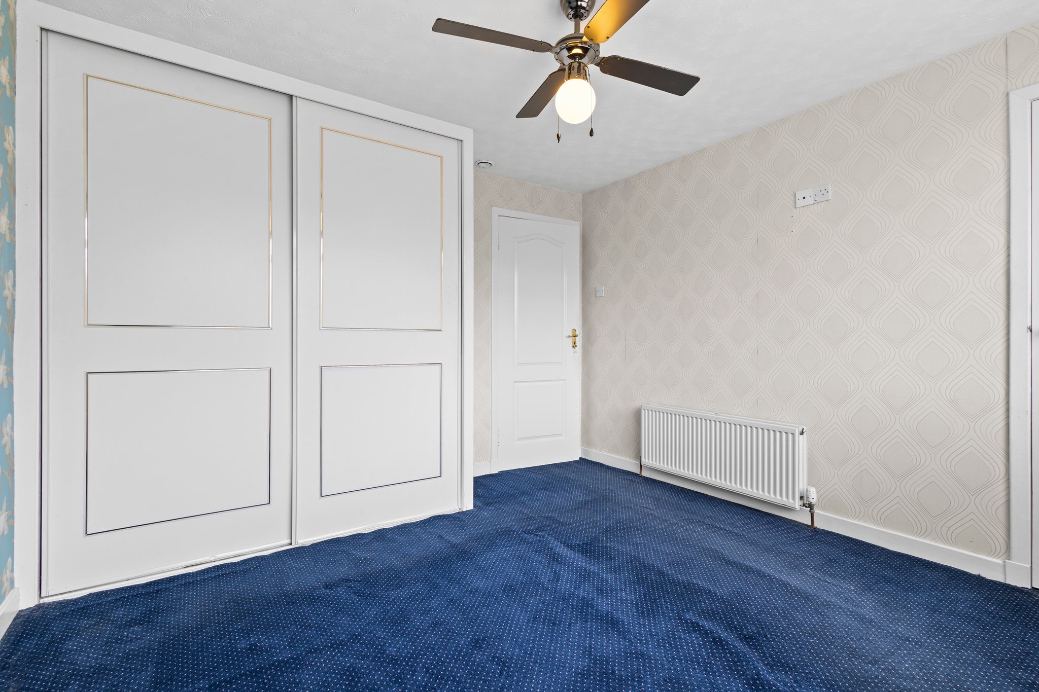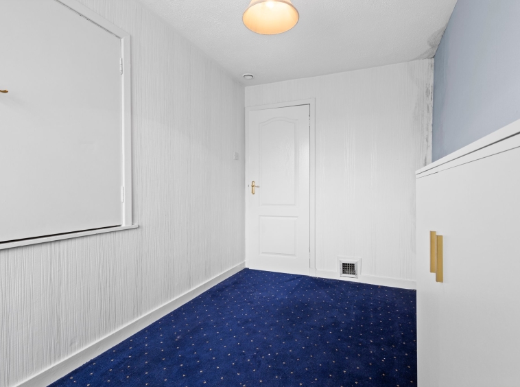 1.99m x 3.63m (6′ 6″ x 11′ 11″) Third bedroom offering neutral decor, fitted carpet, storage cupboard and double glazed window to the front.