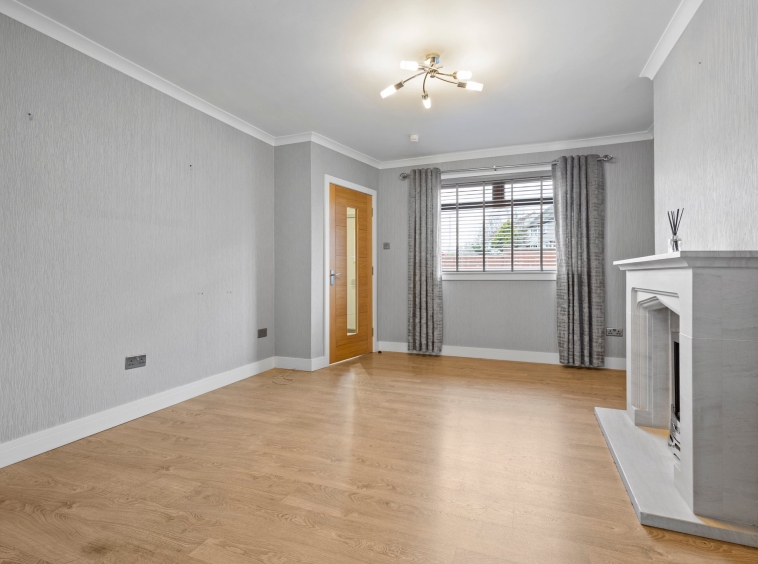 4.56m x 3.66m (15′ 0″ x 12′ 0″) The lounge is a generous main living apartment offering modern decor with ceiling coving, feature fireplace, laminate flooring and double glazed window to the front. Access to kitchen.