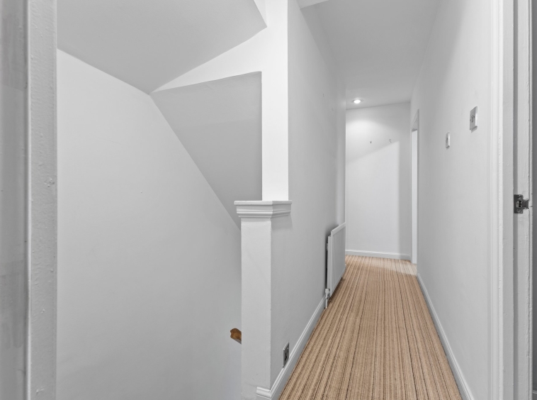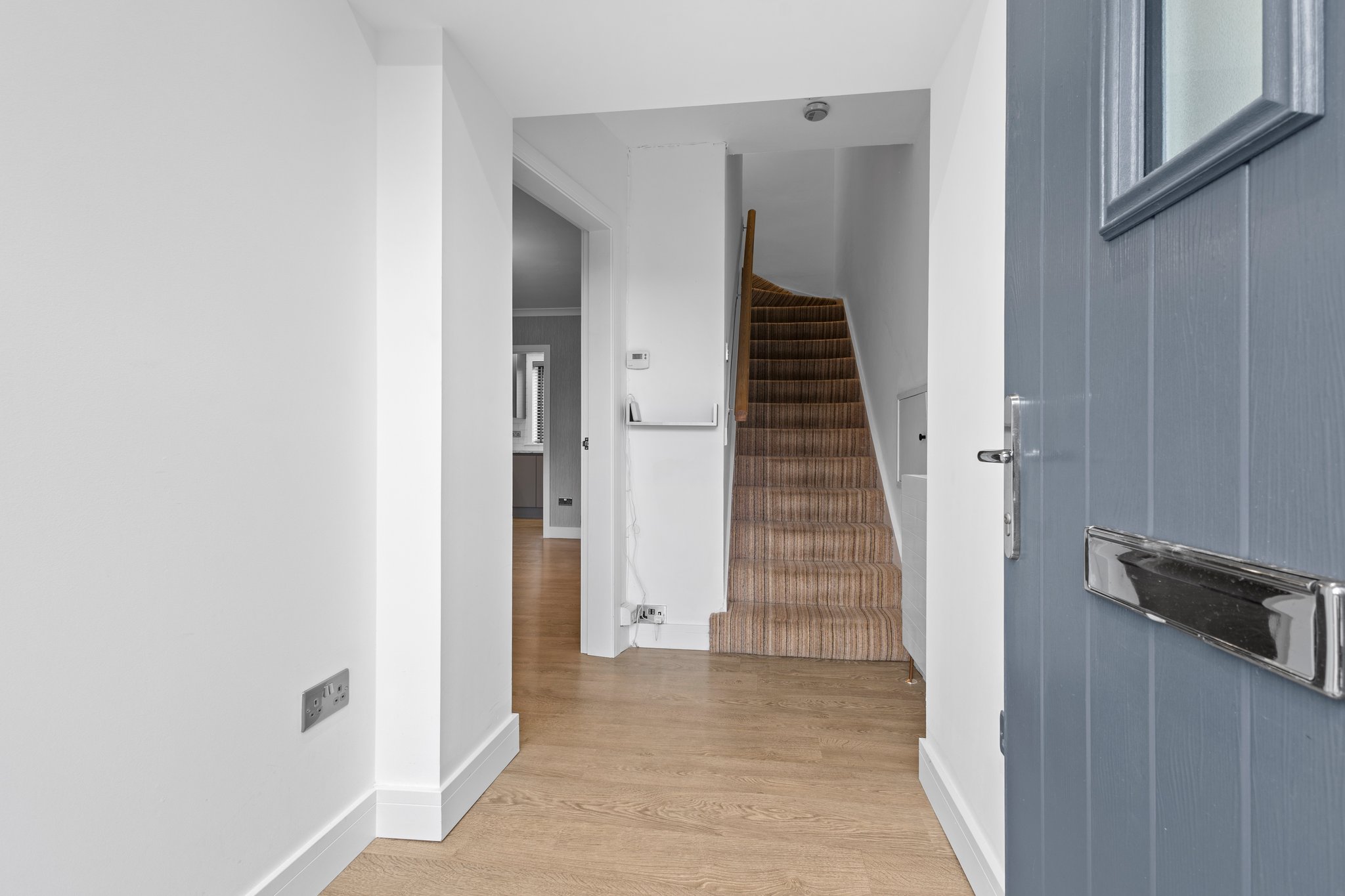 2.86m x 1.51m (9′ 5″ x 4′ 11″) The welcoming entrance hallway offers neutral decor, laminate flooring, carpeted staircase leading to the upper level and open access to lounge.