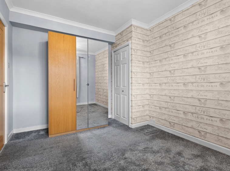 2.95m x 2.55m (9′ 8″ x 8′ 4″) Bedroom three is a double room with modern decor, ceiling coving, fitted carpet and a double glazed window to the front.