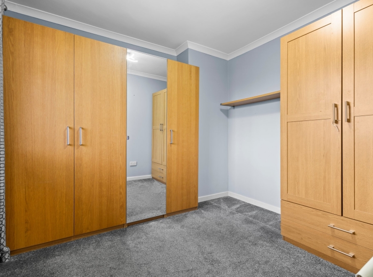 3.72m x 2.55m (12′ 2″ x 8′ 4″) The second double bedroom is rear facing again with enviable castle views, modern decor, ceiling coving, fitted carpet and a practical storage cupboard.