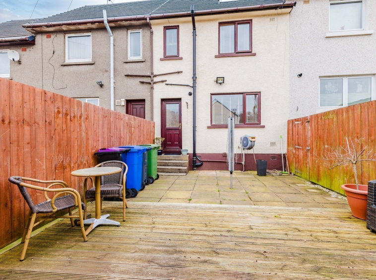 Private garden grounds to the front and rear, landscaped with ease of maintenance in mind. The front gardens are monobloc with chipped borders. The rear gardens are laid to paving with a decked patio and a timber summerhouse. Enclosed by fencing allowing for a safe and peaceful outdoor space.