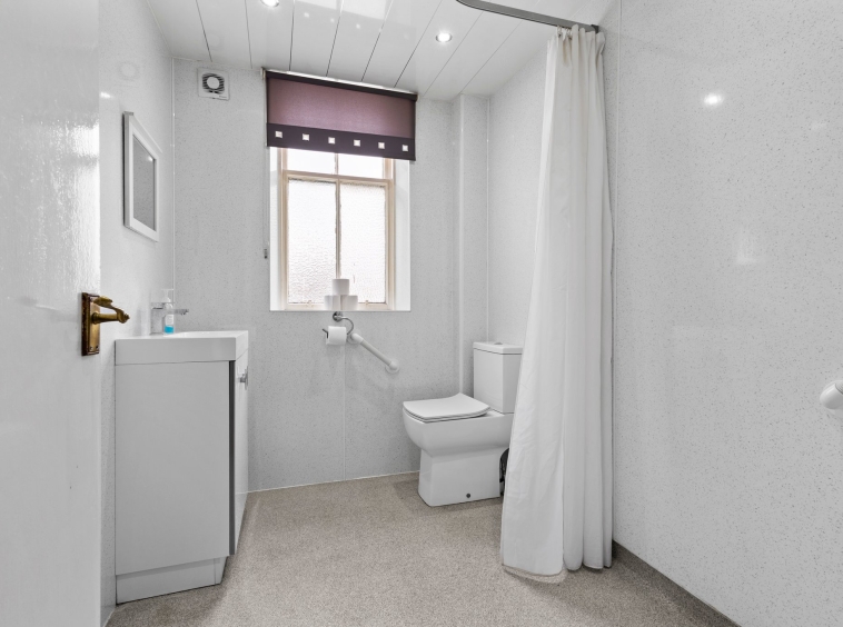 2.58m x 1.87m (8′ 6″ x 6′ 2″) Completing the accommodation is the three piece shower room suite comprising of wash hand basin with vanity storage, wc and walk in shower cubicle with mains overhead shower. Wet wall finish to walls, wet room flooring, ceiling spotlights and opaque window to the rear.