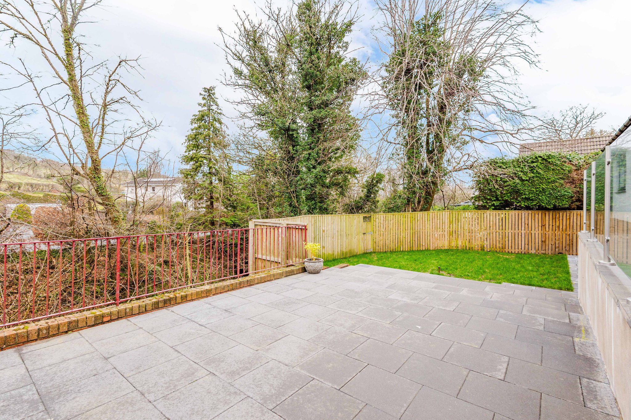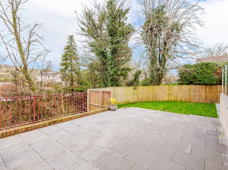The rear garden boasts a well maintained lawn and an elevated paved patio, creating the perfect space for relaxing while overlooking the river or for entertaining guests.