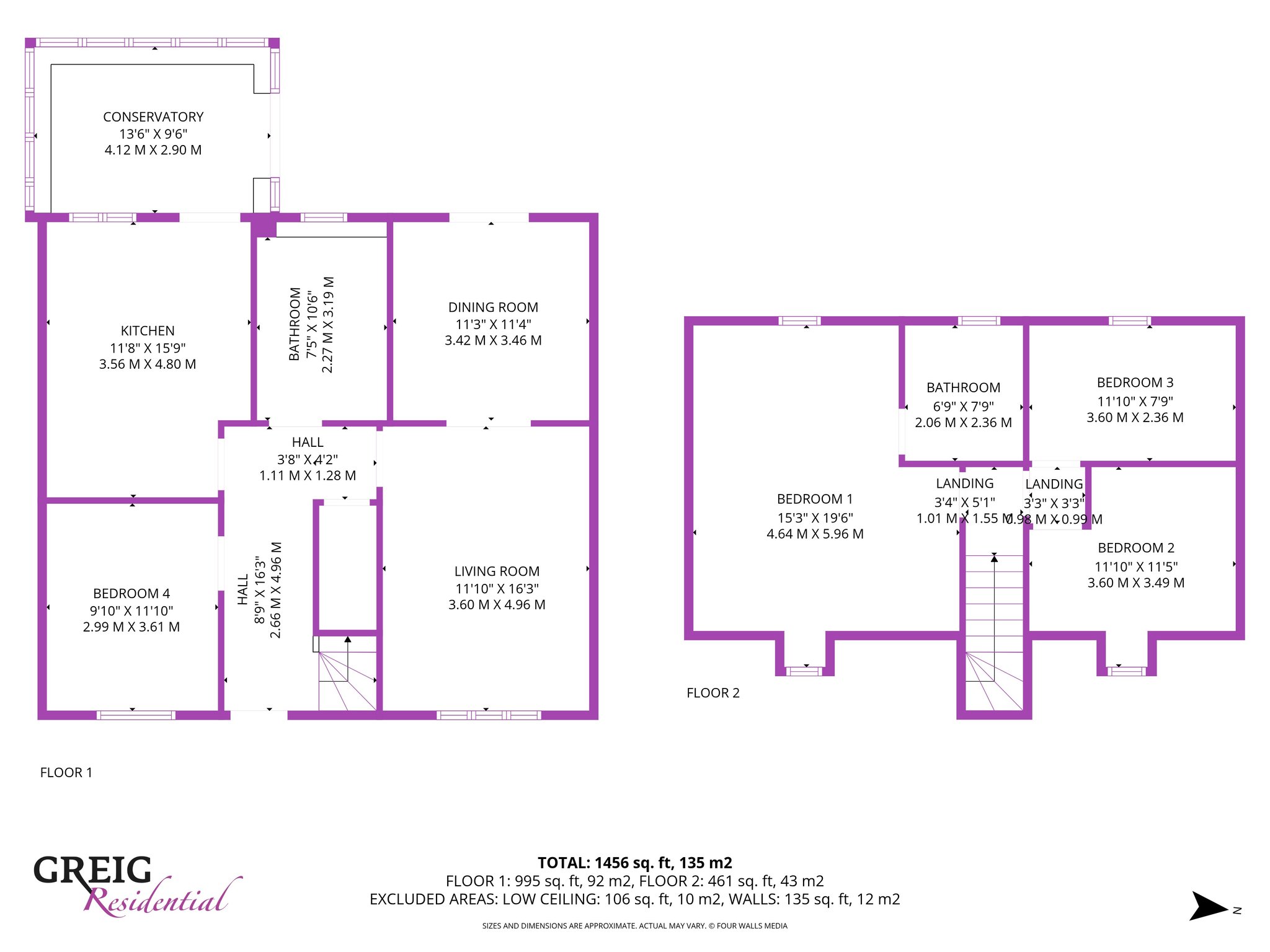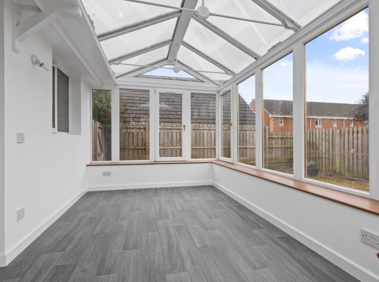 4.12m x 2.90m (13′ 6″ x 9′ 6″) Superb conservatory, fully glazed providing open aspects over the rear garden, neutral decor, vinyl flooring and French doors leading to the rear.