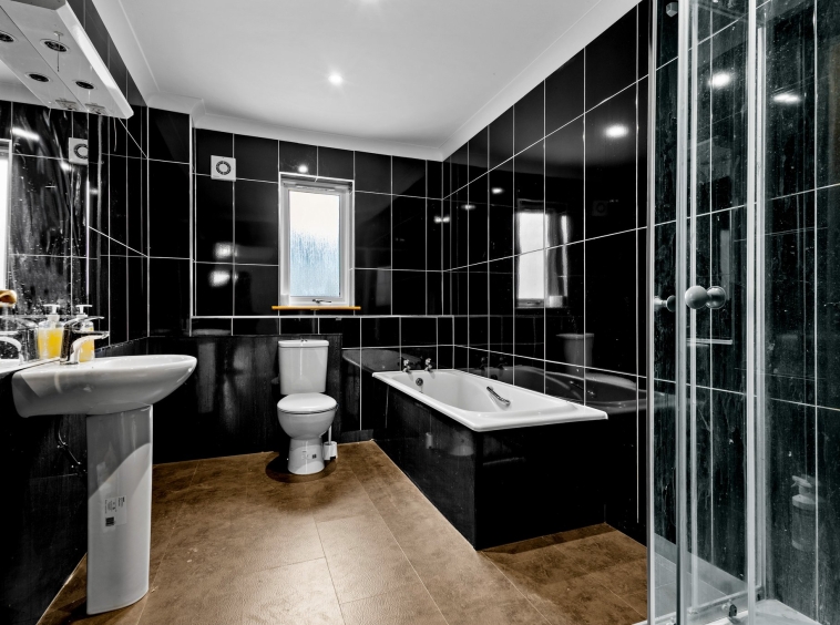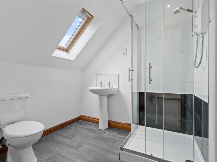 2.27m x 3.19m (7′ 5″ x 10′ 6″) Completing the accommodation is the family bathroom comprising of a wash hand basin, wc, shower cubicle with mains shower, fully tiled finish, laminate flooring and a double glazed window to the rear.