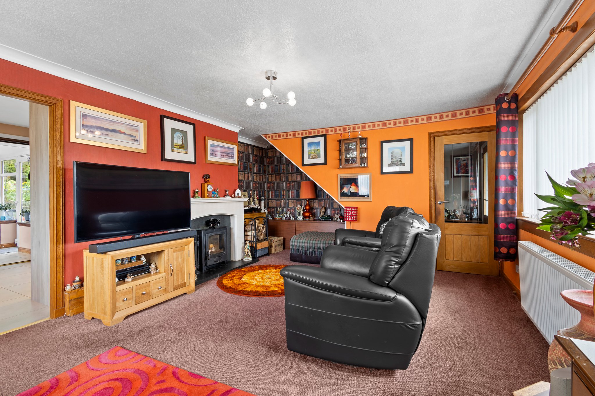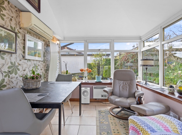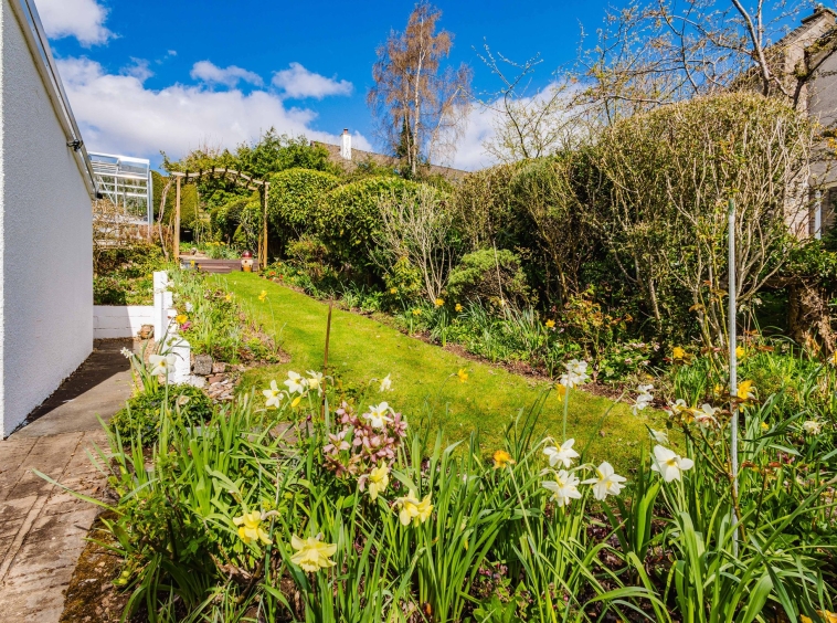 The property boasts a stunning wrap around plot complete with beautifully maintained and thoughtfully designed gardens that offers both charm and functionality. To the font and side of the home, a well kept lawn is bordered by mature shrubs and seasonal planting, creating a lush, green outlook. A paved pathway runs alongside the house, leading you through vibrant flowerbeds filled with a variety of colourful blooms. An impregnated concrete driveway to the side allows for ample off street parking and leads to the garage.