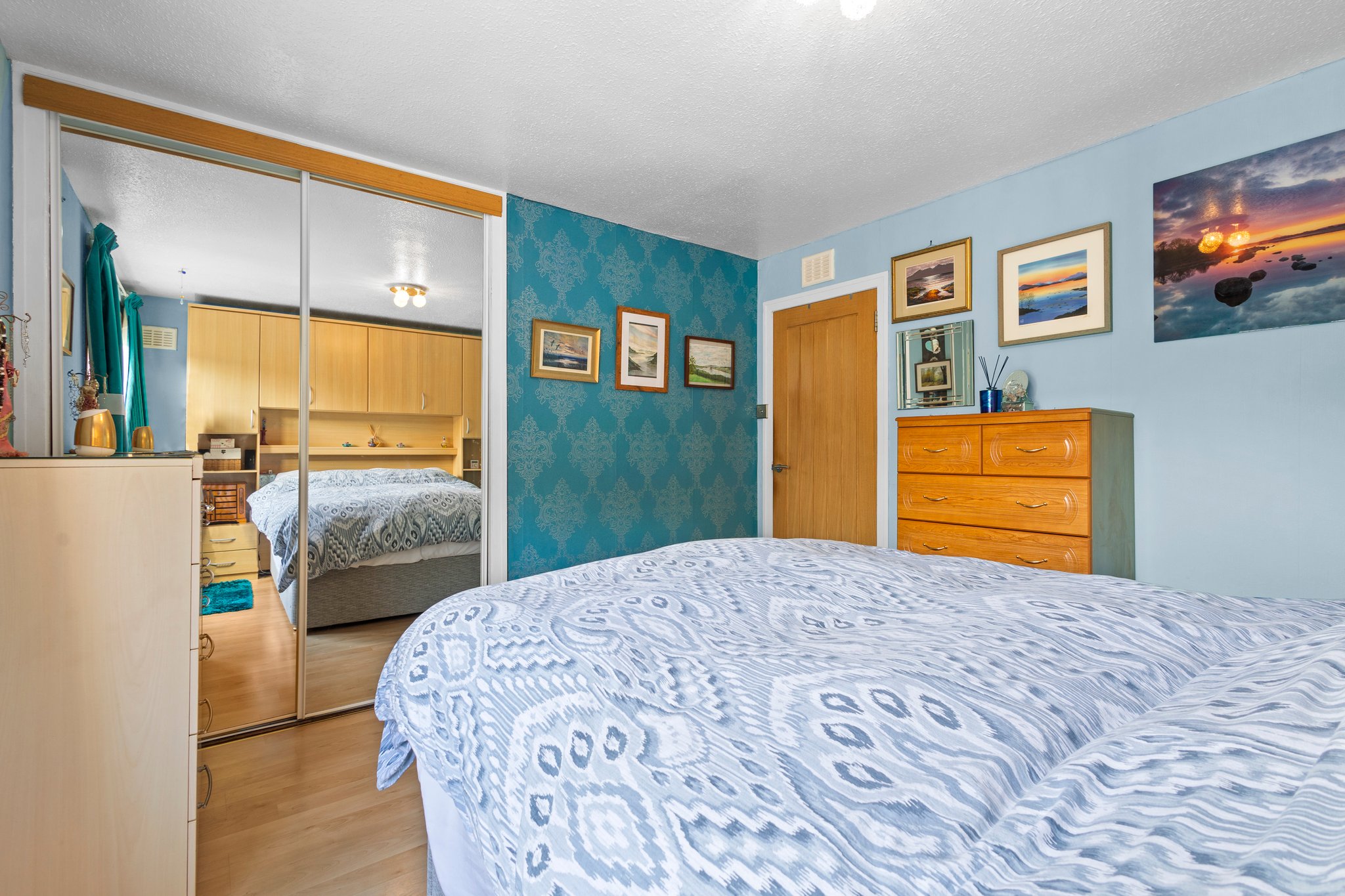 Conveniently positioned on the ground floor, this double bedroom offers soft decor with laminate flooring, double mirrored door fitted wardrobes and a double glazed window to the side.