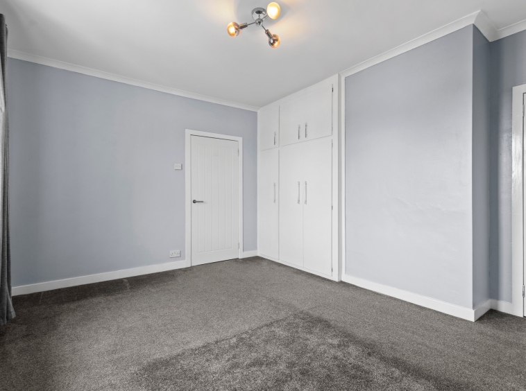 4.31m x 3.84m (14′ 2″ x 12′ 7″) The master bedroom is a generous double offering modern decor, ceiling coving, fitted carpet and double door fitted wardrobes. Storage cupboard and front facing double glazed window.