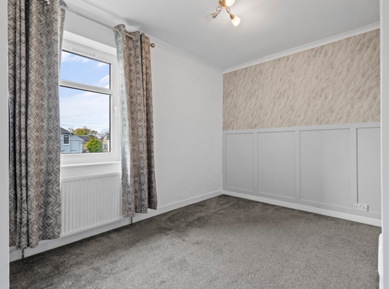 4.31m x 2.84m (14′ 2″ x 9′ 4″) The second double bedroom is rear facing with a double glazed window overlooking the gardens, soft contemporary decor, ceiling coving, fitted carpet and storage cupboard.