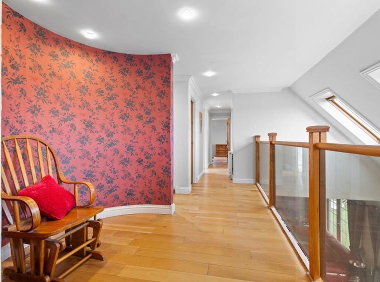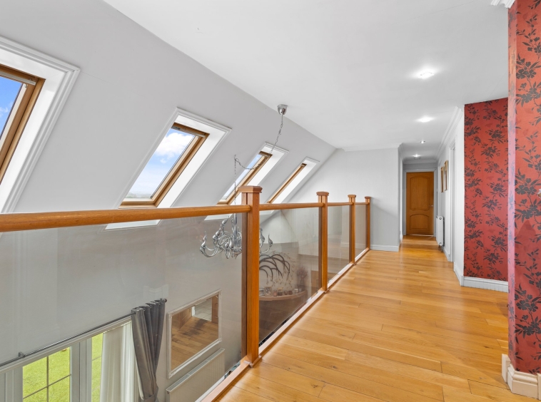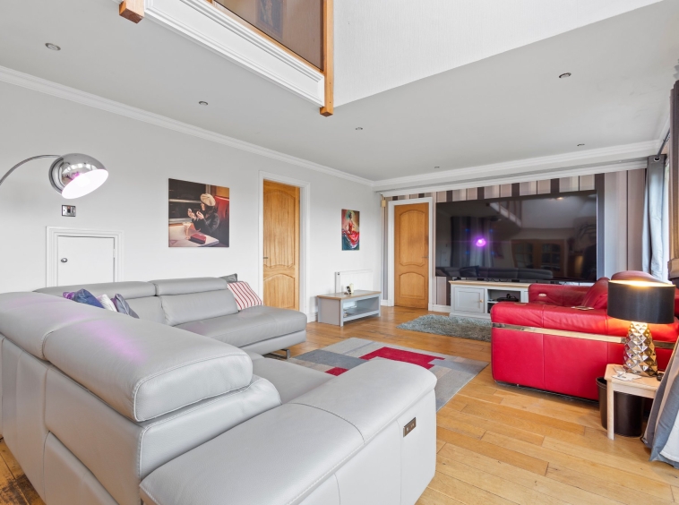Perfectly positioned within the rolling landscape of the Ayrshire countryside, Craigstone House is a modern detached villa offering six substantial principal apartments. The accommodation extends over two expansive levels, delivering a seamless balance of refined living and versatile family space. Lovingly maintained and presented, the interiors are defined by contemporary decor, enhanced by high quality fixtures and finishes throughout. A striking vaulted ceiling with glass balustrade forms a dramatic architectural centrepiece, creating a remarkable sense of light and volume while underscoring the home’s distinctive character. Set amidst generous landscaped grounds, the property provides a tranquil and private retreat, complete with extensive private parking and a substantial garage.