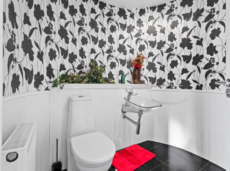 1.80m x 1.83m (5′ 11″ x 6′ 0″) Practical wc, conveniently located on the lower level comprising of a modern wash hand basin, wc, ceiling spotlights, stylish tiling to walls and flooring.