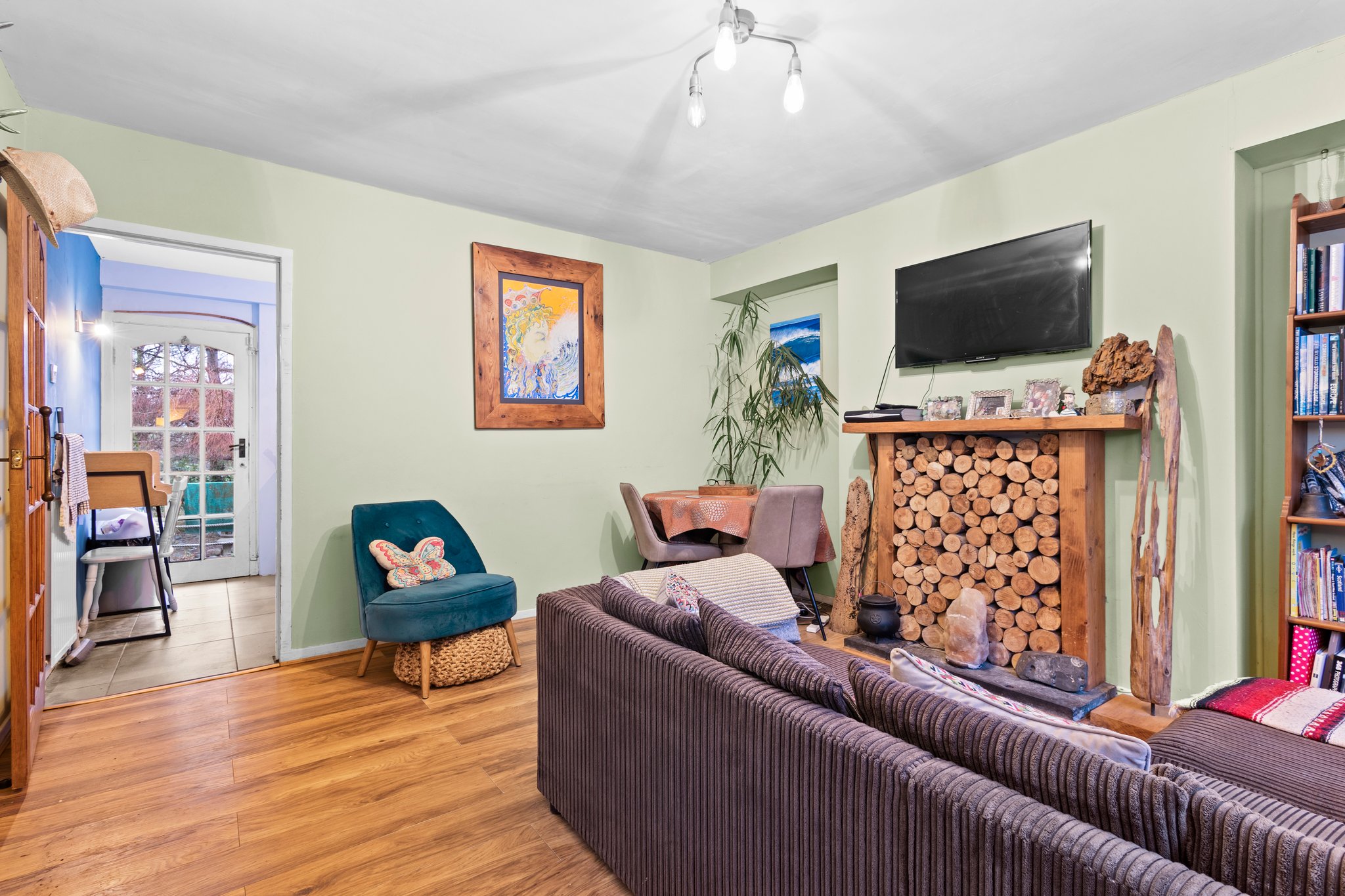 4.26m x 3.87m (14′ 0″ x 12′ 8″) The formal lounge is a generously proportioned main living apartment offering soft decor with laminate flooring, decorative feature fireplace surround, double glazed window to the front and plentiful space for freestanding furniture. Access to kitchen.