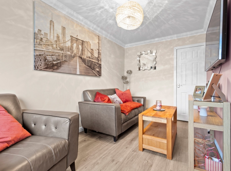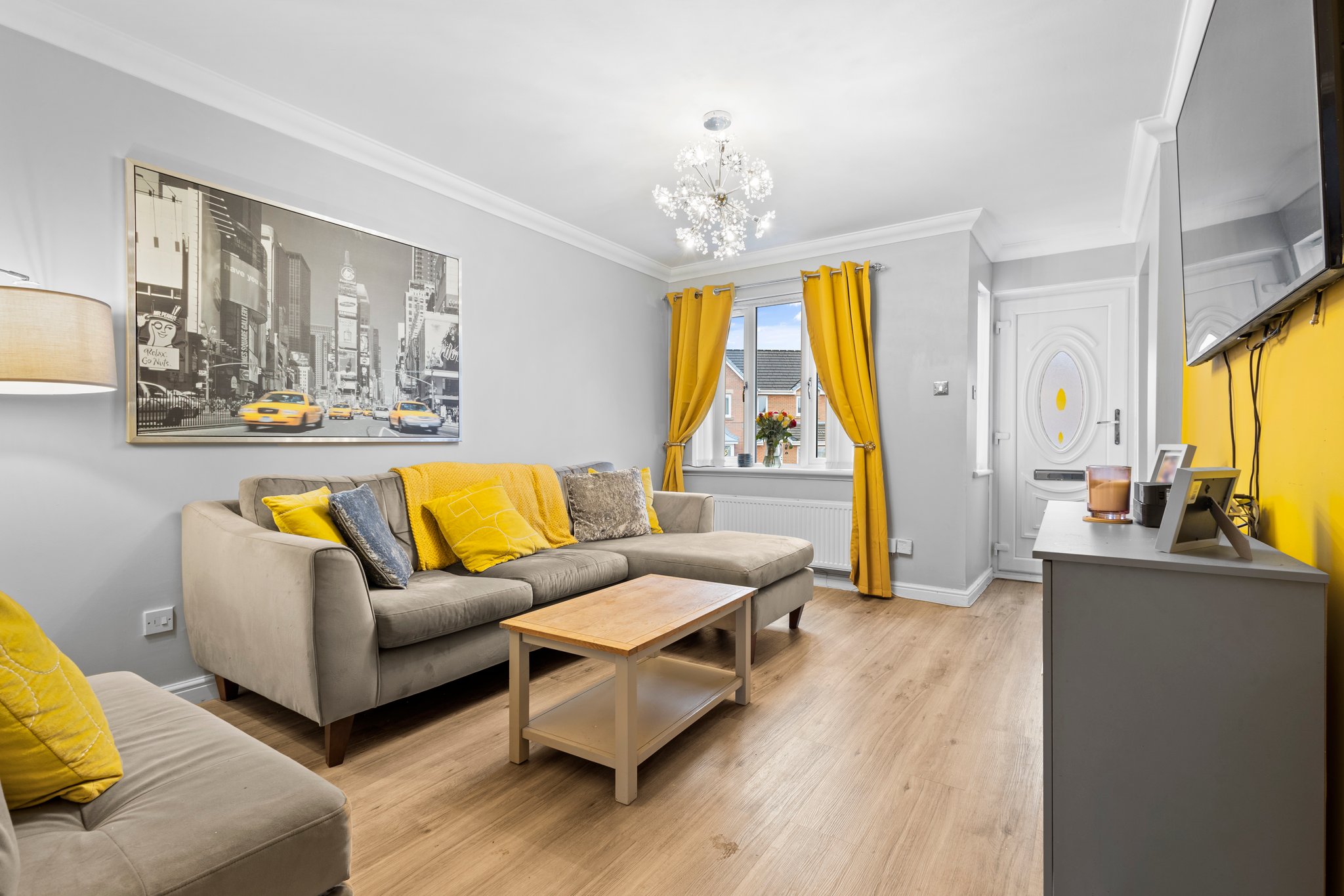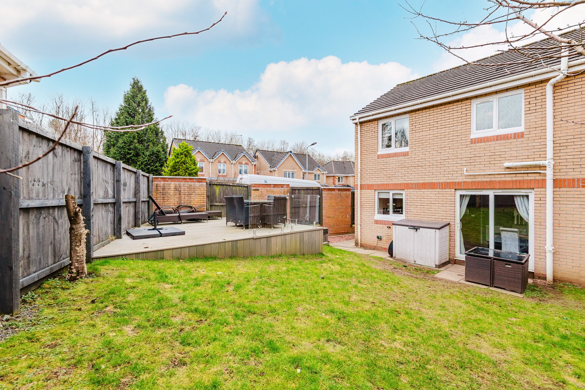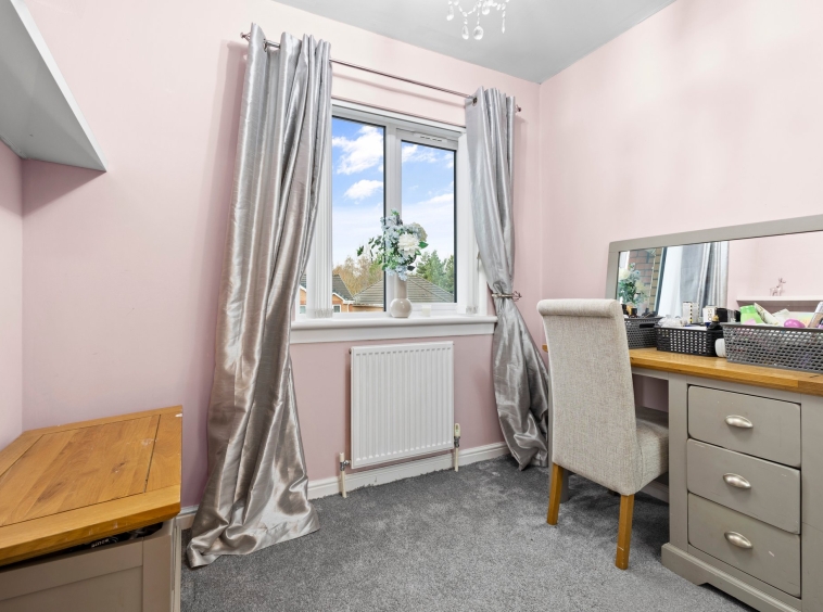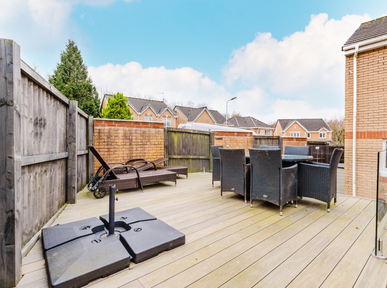 Positioned on a generous plot, this family villa boasts private garden grounds to the front and rear. The front gardens are laid to lawn, bordered by hedging, with a driveway providing ample off street parking. The rear gardens offer a generous lawn and a modern decked patio with feature glass balustrade. Enclosed by fencing allowing for a safe and peaceful outdoor family space.