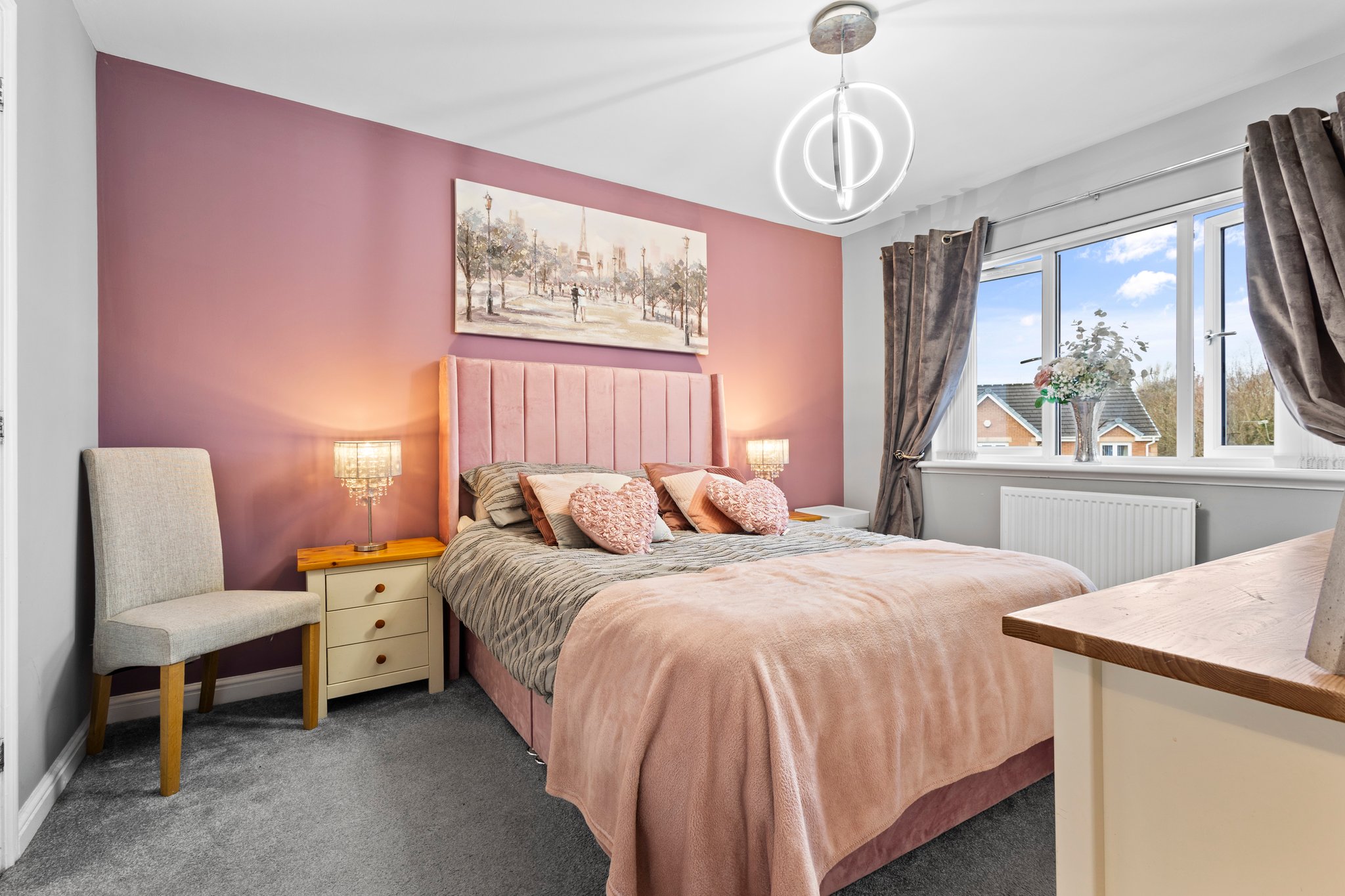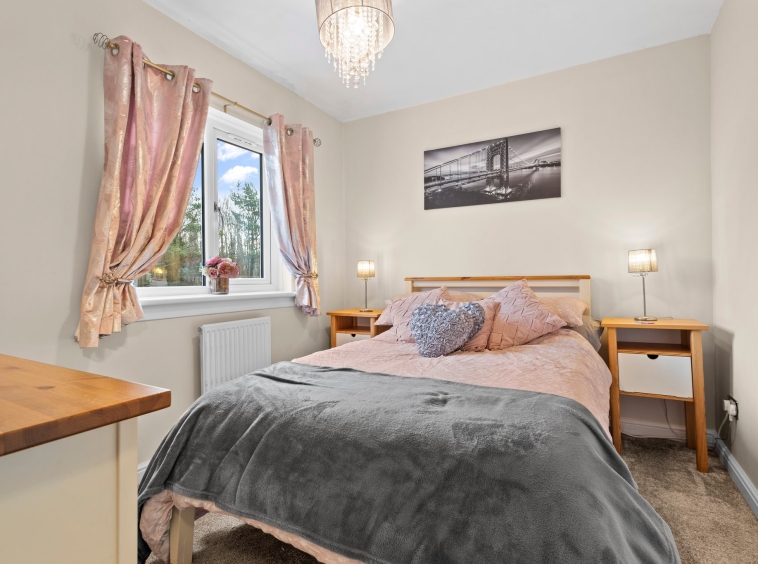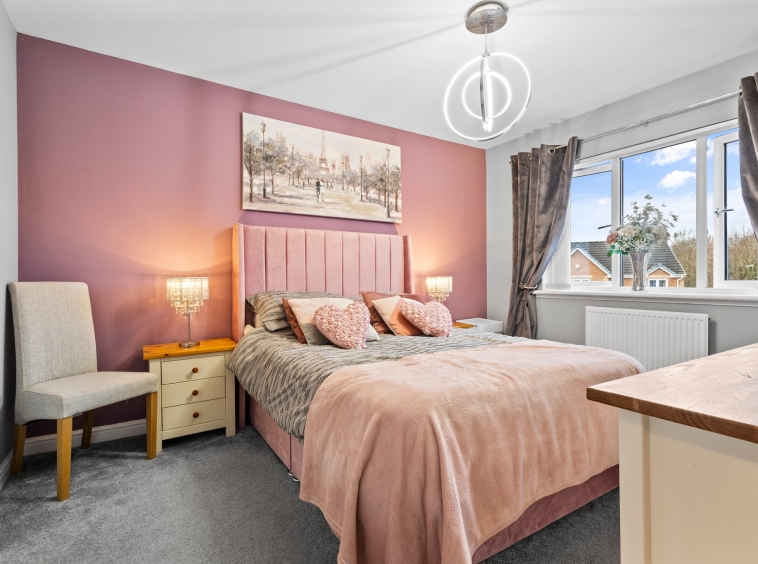 3.70m x 3.05m (12′ 2″ x 10′ 0″) On the upper level the master bedroom is a generous double offering modern decor, fitted carpet and a double glazed window to the front. Plentiful space for freestanding furniture.