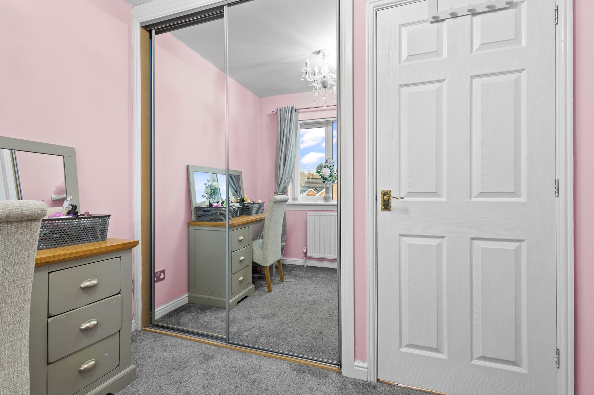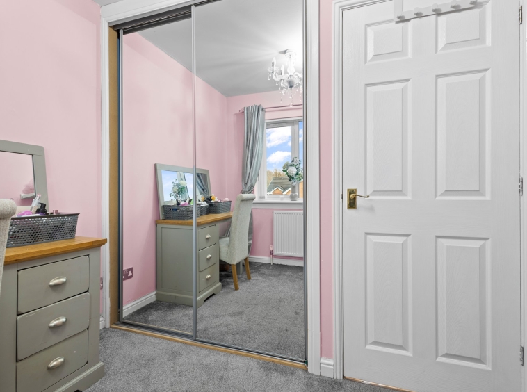 2.47m x 1.91m (8′ 1″ x 6′ 3″) Bedroom three is front facing with a double glazed window, soft decor, fitted carpet and double mirrored door fitted wardrobes providing storage space.