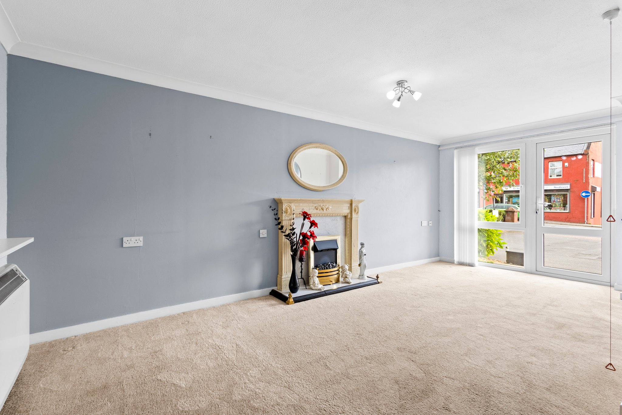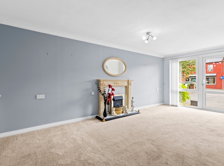 2.81m x 2.31m (9′ 3″ x 7′ 7″) 3.47m x 3.57m (11′ 5″ x 11′ 9″) Generously proportioned main apartment boasting neutral decor, feature fireplace, ceiling coving, fitted carpet, plentiful space for free standing furniture, double glazed French doors to the front and access to the kitchen.