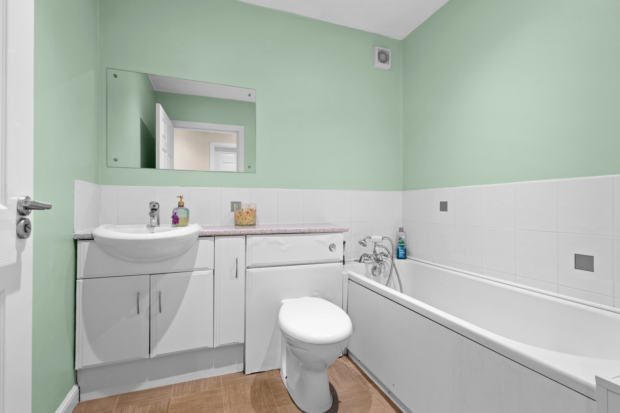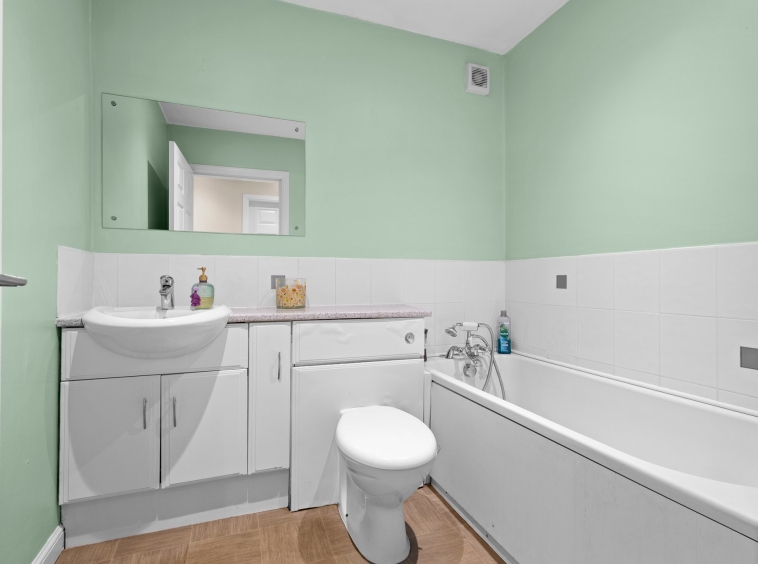 1.94m x 2.20m (6′ 4″ x 7′ 3″) Completing the accommodation is the stylish bathroom comprising of a wash hand basin, wc, bath, neutral decor, half height tiling, ceiling spotlights, heated towel rail and FLOORING.