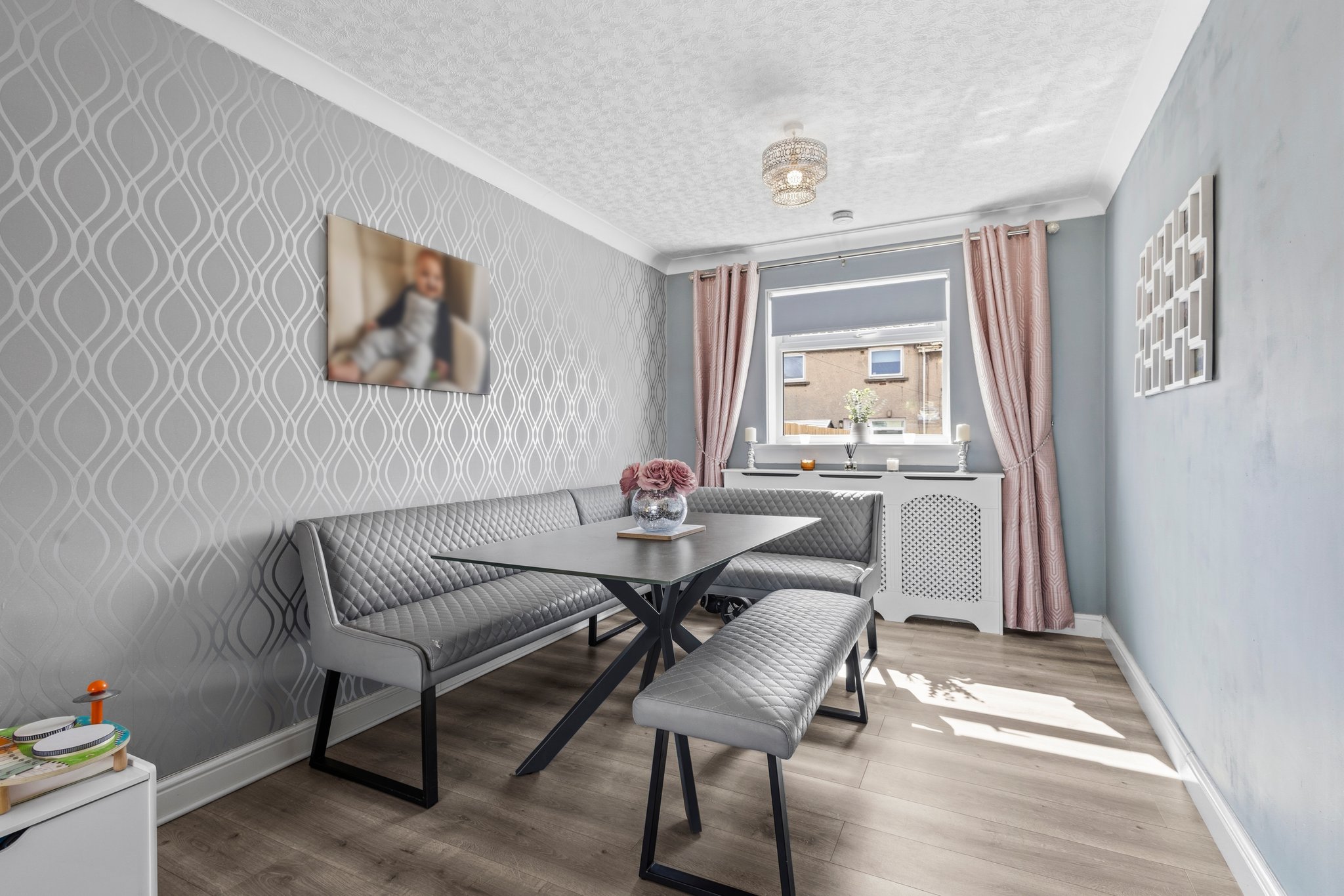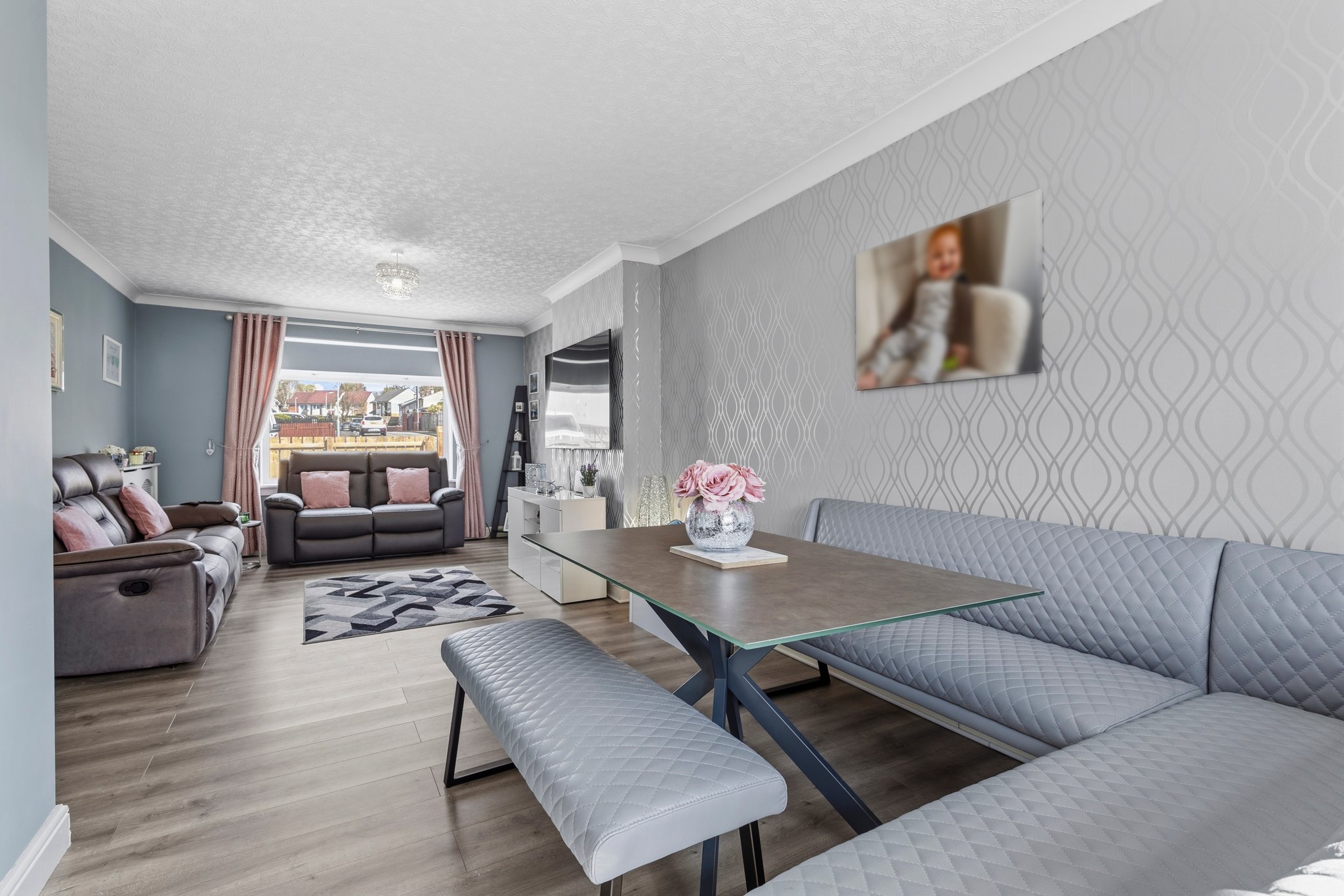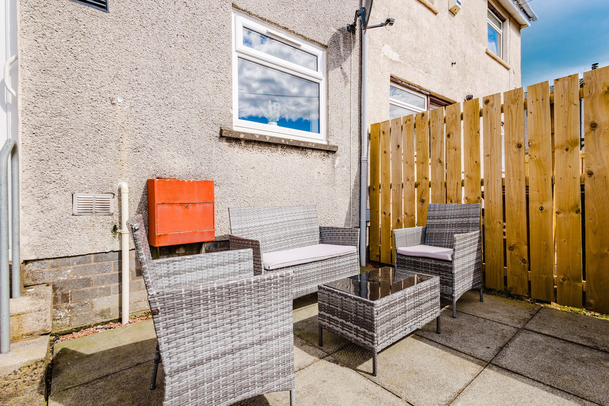 The property further benefits from private gardens to both the front and rear. The front garden is fully enclosed and finished with decorative chips, while the rear garden has been thoughtfully designed for low maintenance, featuring a chipped area and a generous paved patio—ideal for outdoor dining and entertaining.