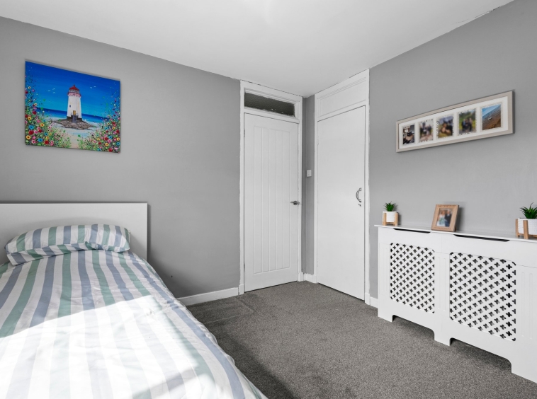 2.52m x 3.07m (8′ 3″ x 10′ 1″) Bedroom three is a good sized apartment offering contemporary decor, over stairs storage cupboard, fitted carpet and a double glazed window to the front.