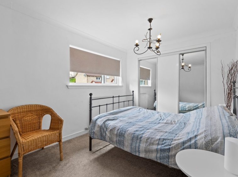 3.93m x 2.64m (12′ 11″ x 8′ 8″) On the upper level the master bedroom is a sizeable double offering neutral decor, fitted carpet and triple sliding door fitted wardrobes providing plentiful storage space. Double glazed window to the front.
