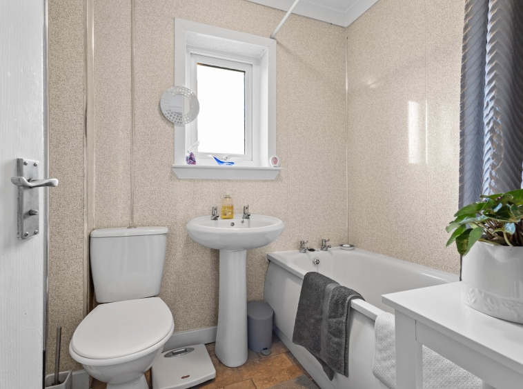 1.92m x 1.71m (6′ 4″ x 5′ 7″) Completing the accommodation is the three piece bathroom suite comprising of a wash hand basin, wc and bath. Contemporary wet wall finish to walls, tiled flooring and a double glazed opaque window to the rear.