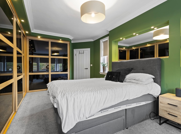 5.93m x 3.74m (19′ 5″ x 12′ 3″) The master bedroom is an impressive double offering stylish decor with ceiling coving and fitted carpet, ‘L’ shaped fitted wardrobes providing an abundance of storage space and double glazed bay window to the front.