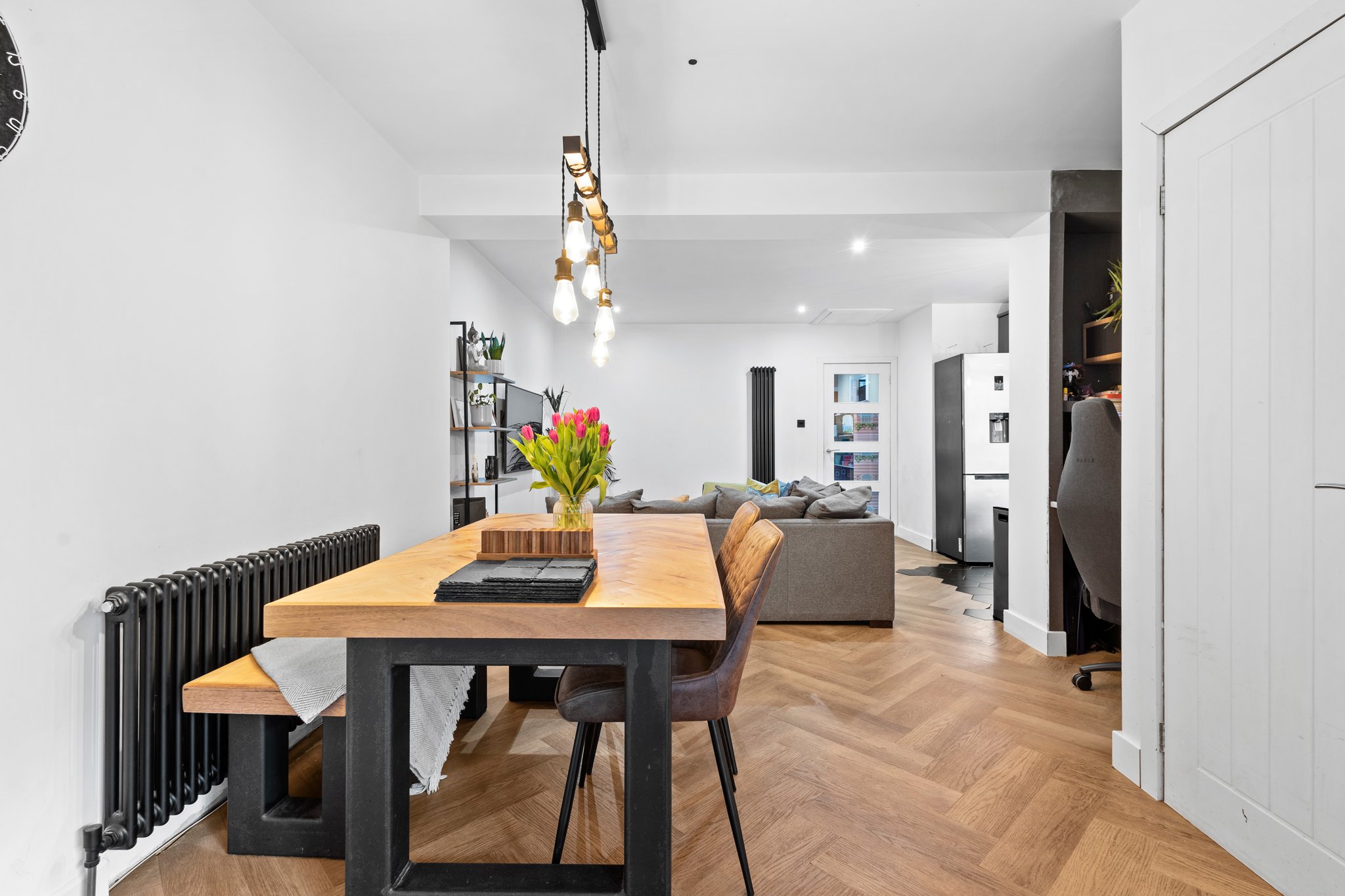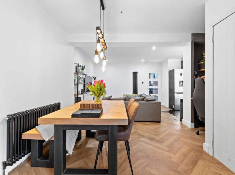 3.60m x 4.02m (11′ 10″ x 13′ 2″) 3.27m x 3.97m (10′ 9″ x 13′ 0″) Generously proportioned main apartment featuring a modern open plan layout to the dining room and kitchen, stylish contemporary decor, plentiful space for free standing furniture, storage cupboard, modern LVT flooring and stunning bi-folding doors offering an open outlook over the rear gardens.