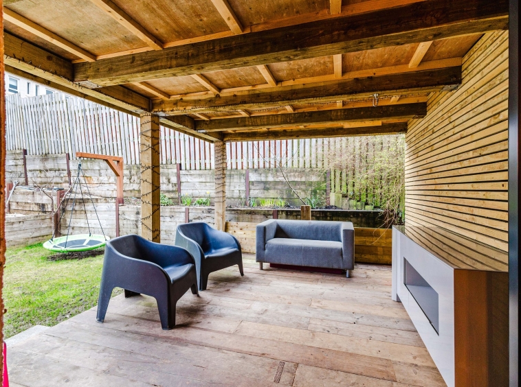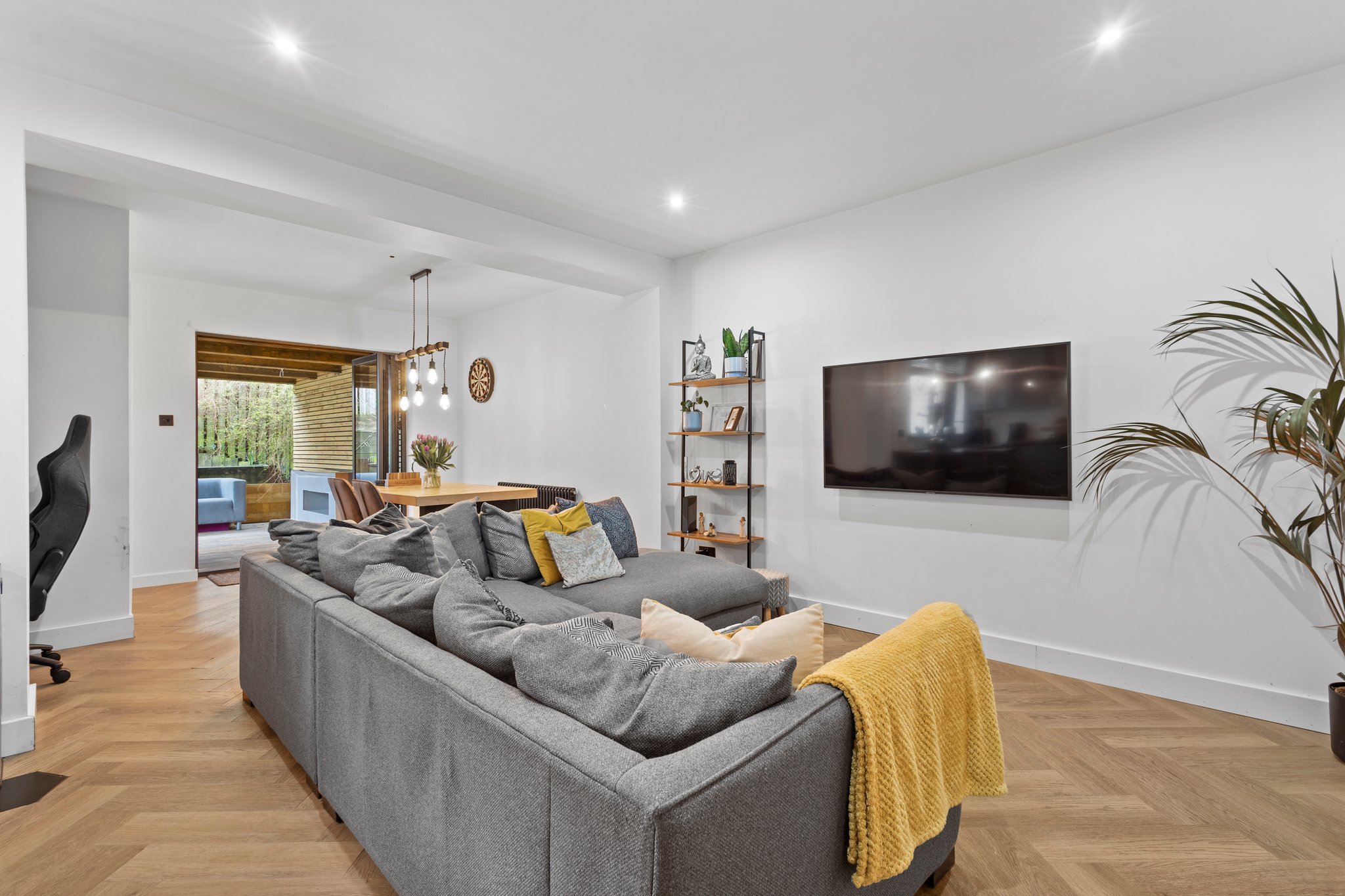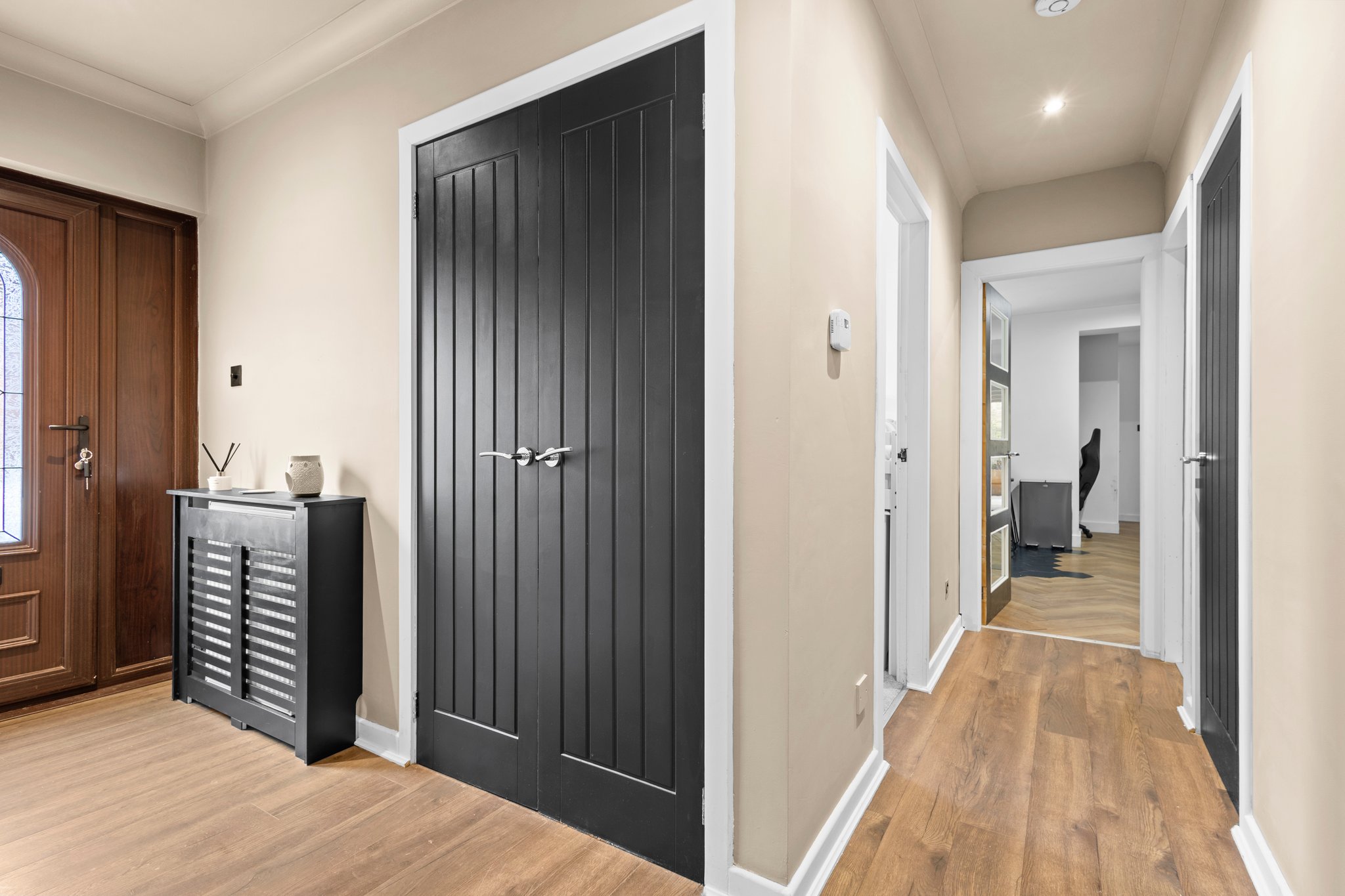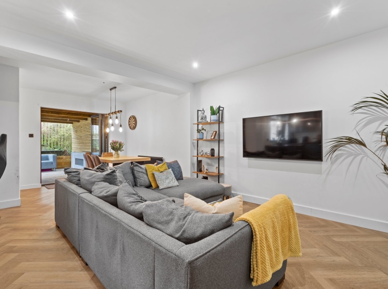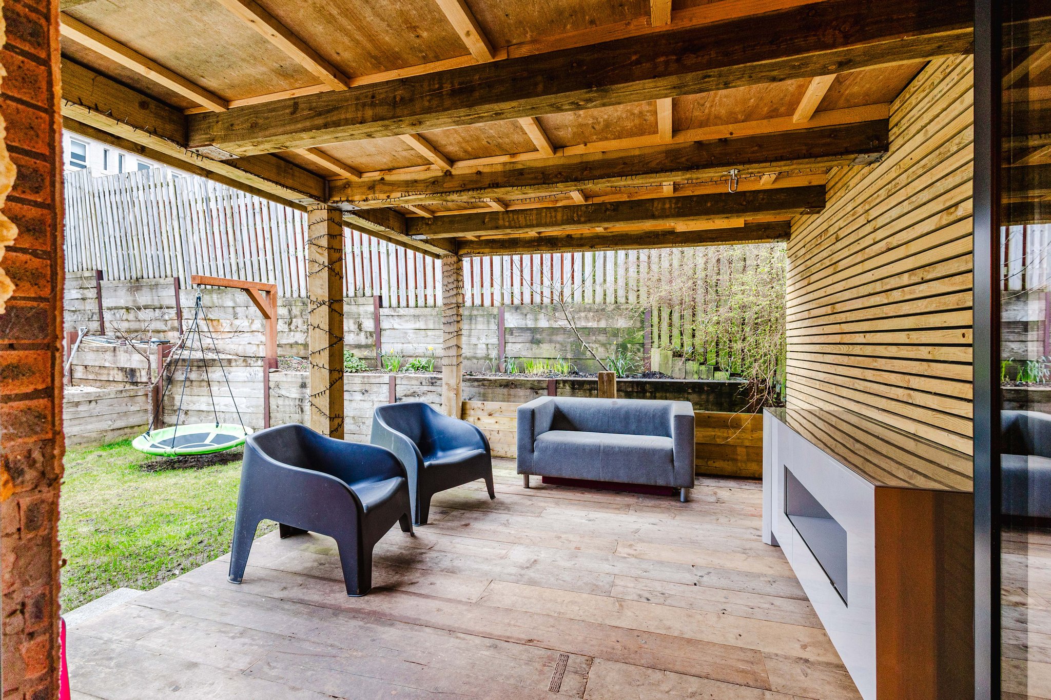 This property features generous private gardens to both the front and rear. The front garden includes a well maintained lawn, along with a combination of chipped and paved driveway to the side, plus an additional paved driveway offering extra off street parking and access to the garage. The fully enclosed rear garden provides a spacious lawn and an impressive decked patio with a covered pergola, creating an ideal setting for outdoor dining and entertaining.