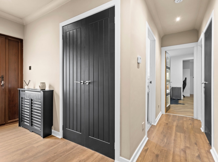 3.71m x 0.92m (12′ 2″ x 3′ 0″) 1.15m x 2.78m (3′ 9″ x 9′ 1″) Access is given to a welcoming entrance ‘L’ shaped hallway offering modern decor, practical storage cupboard, ceiling coving and stylish laminate flooring. The hallway gives access to all apartments.