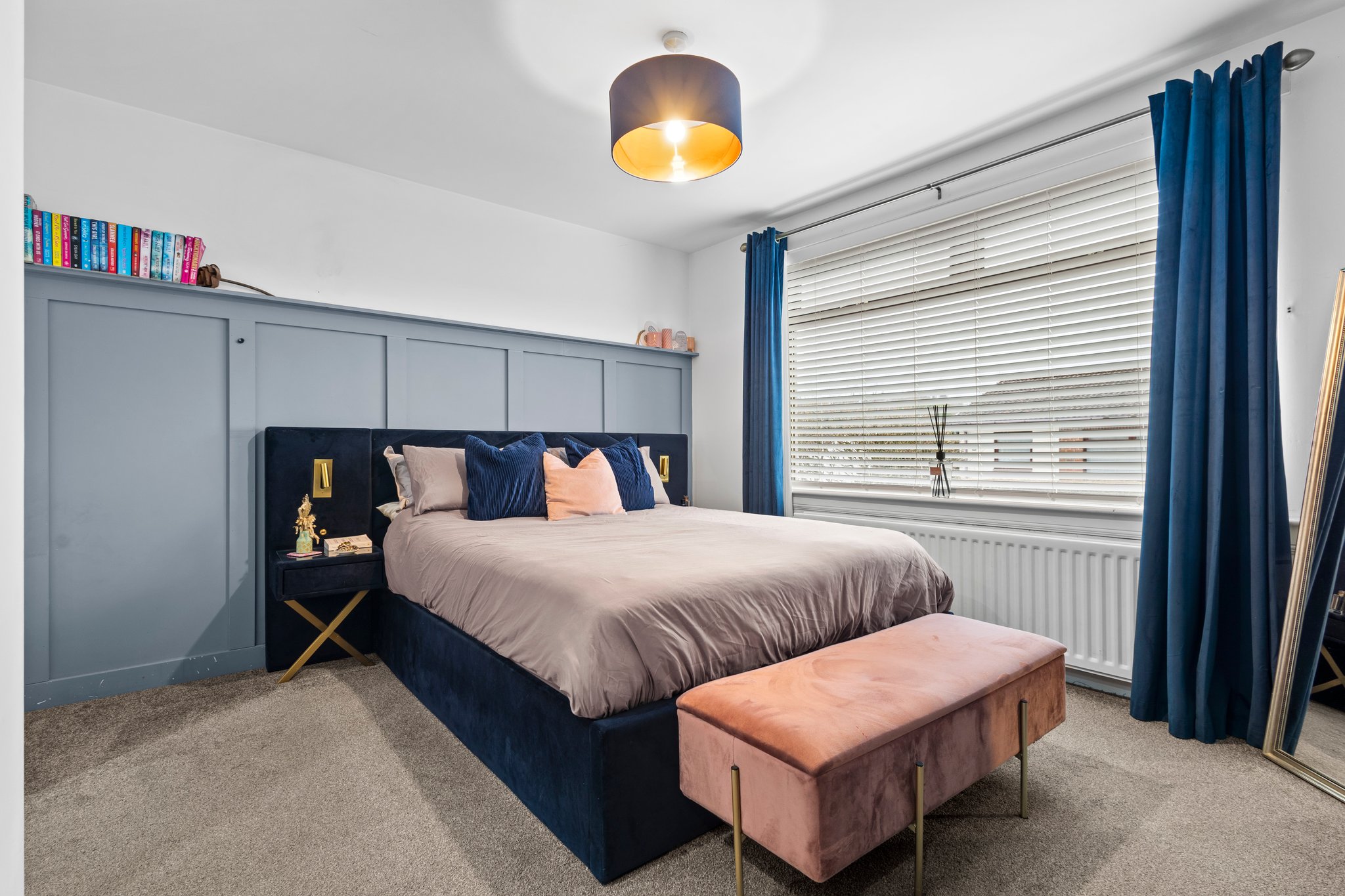 3.25m x 2.68m (10′ 8″ x 8′ 10″) Spacious double bedroom with modern decor, fitted carpet and double glazed window to the front.
