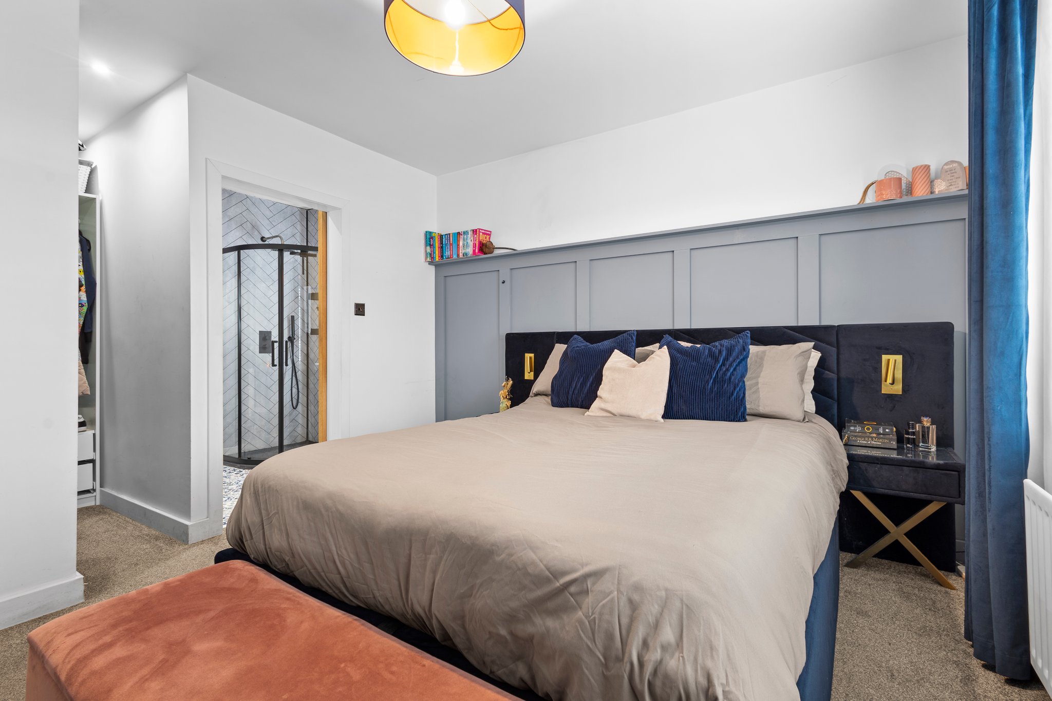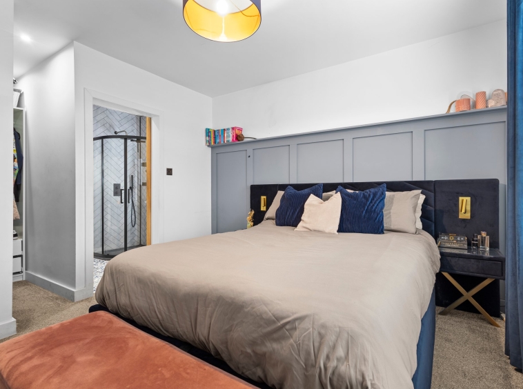 3.54m x 4.01m (11′ 7″ x 13′ 2″) The master bedroom is an impressive double offering modern decor with feature wood panelling, a large walk in wardrobe, fitted carpet, double glazed window to the front and access to en-suite facilities.