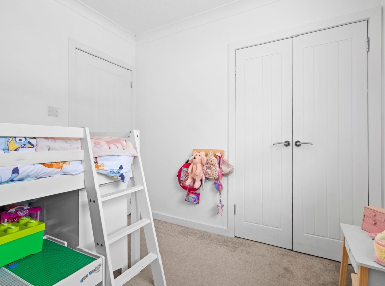 2.93m x 2.68m (9′ 7″ x 8′ 10″) Bedroom three is a good sized apartment offering modern decor, practical storage cupboard, ceiling coving, fitted carpet and a double glazed window to the side.