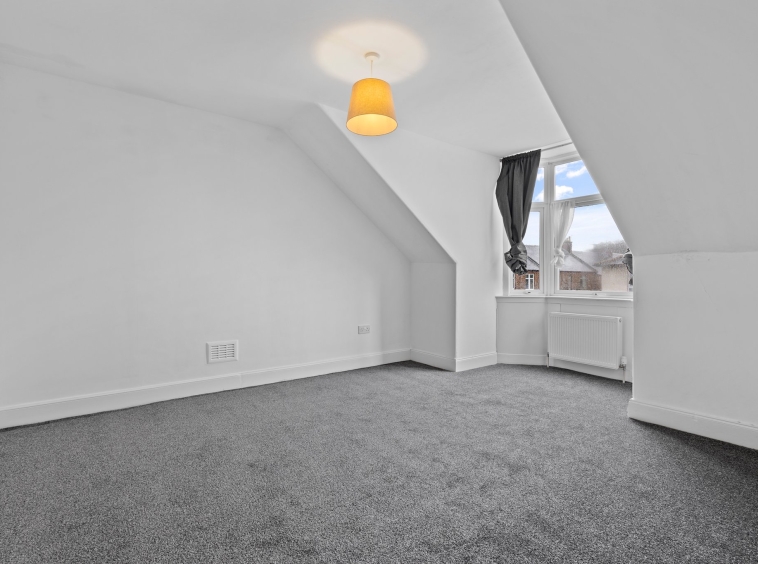 4.07m x 4.76m (13′ 4″ x 15′ 7″) Double bedroom featuring neutral decor, fitted carpet, double glazed bay window to the front.