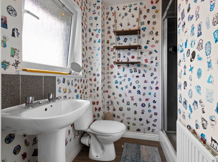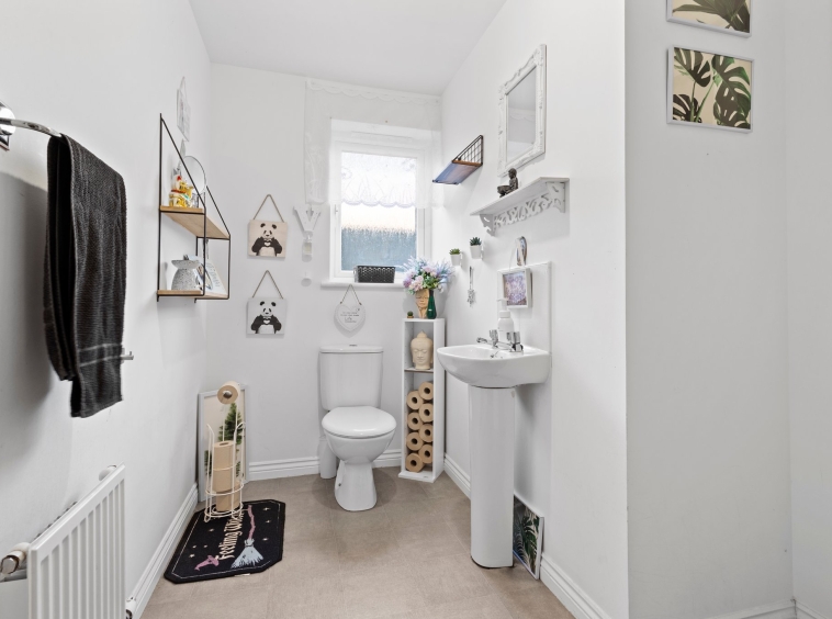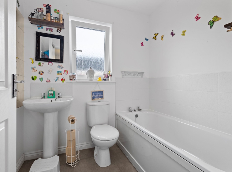 1.75m x 1.98m (5′ 9″ x 6′ 6″) Completing the accommodation is the family bathroom comprising of a wash hand basin, wc, bath, neutral decor with stylish half height tiling, vinyl flooring and a double glazed window to the side.
